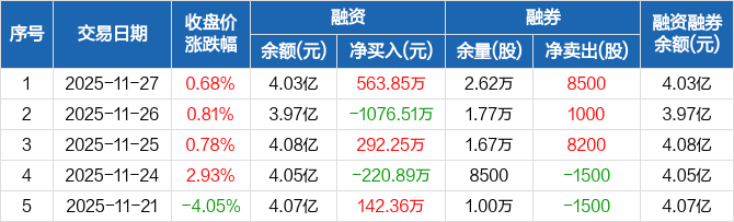 博腾股份:融资净买入563.85万元,融资余额4.03亿元(11-27)