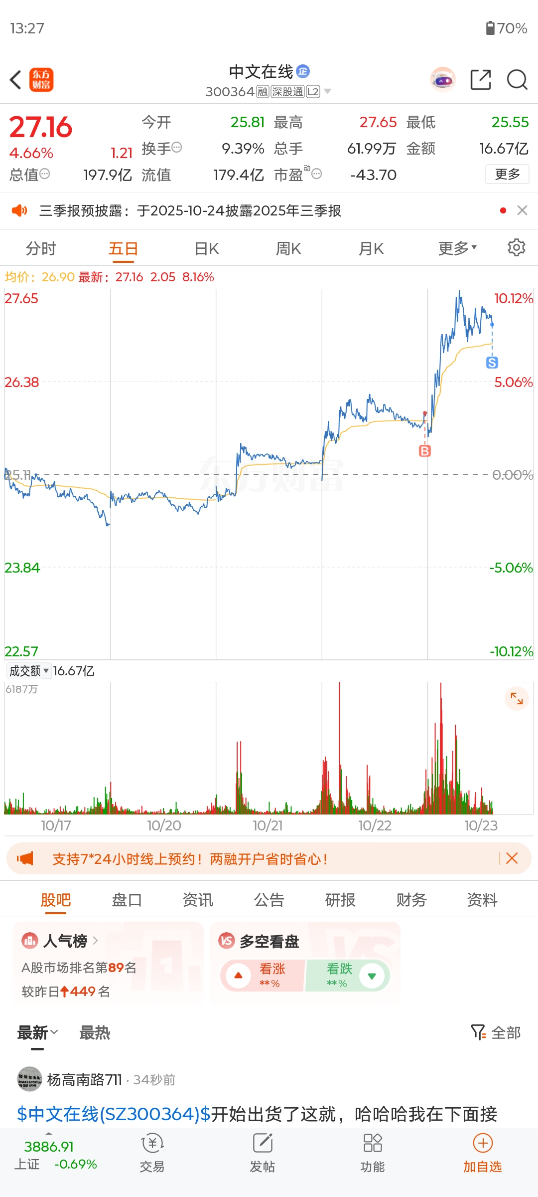 $中文在线(SZ300364)$ 买的少的涨的多,买的多的跌的多