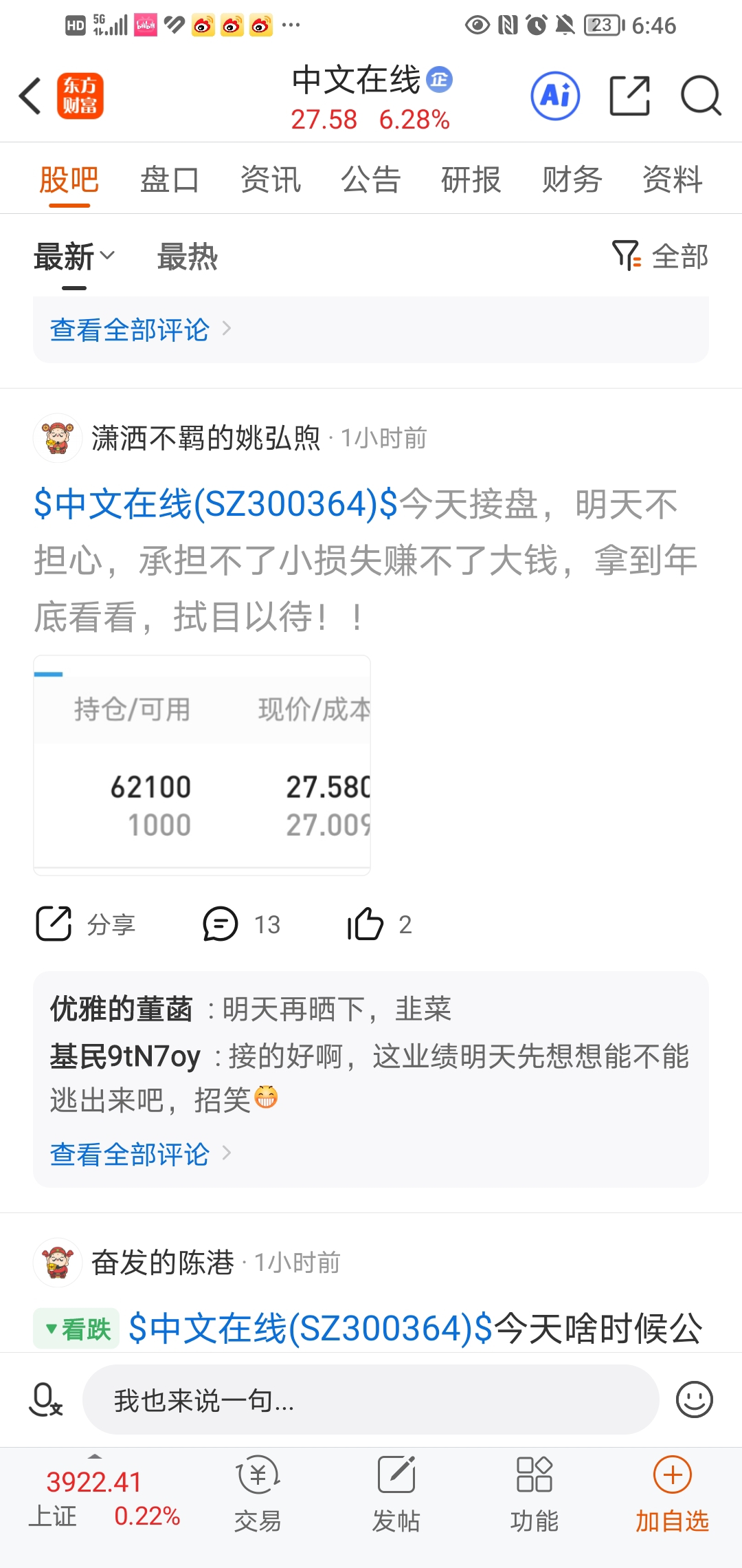温馨提示: 1.根据《证券法》规定,禁止编造、传播虚假信息或者误导性信息,扰乱证券市场;2.用户在本社区发表的所有资料、言论等仅代表个人观点,与本网站立场无关,不对您构成任何投资建议。用户应基于自己的独立判断,自行决定证券投资并承担相应风险。《东方财富社区管理规定》