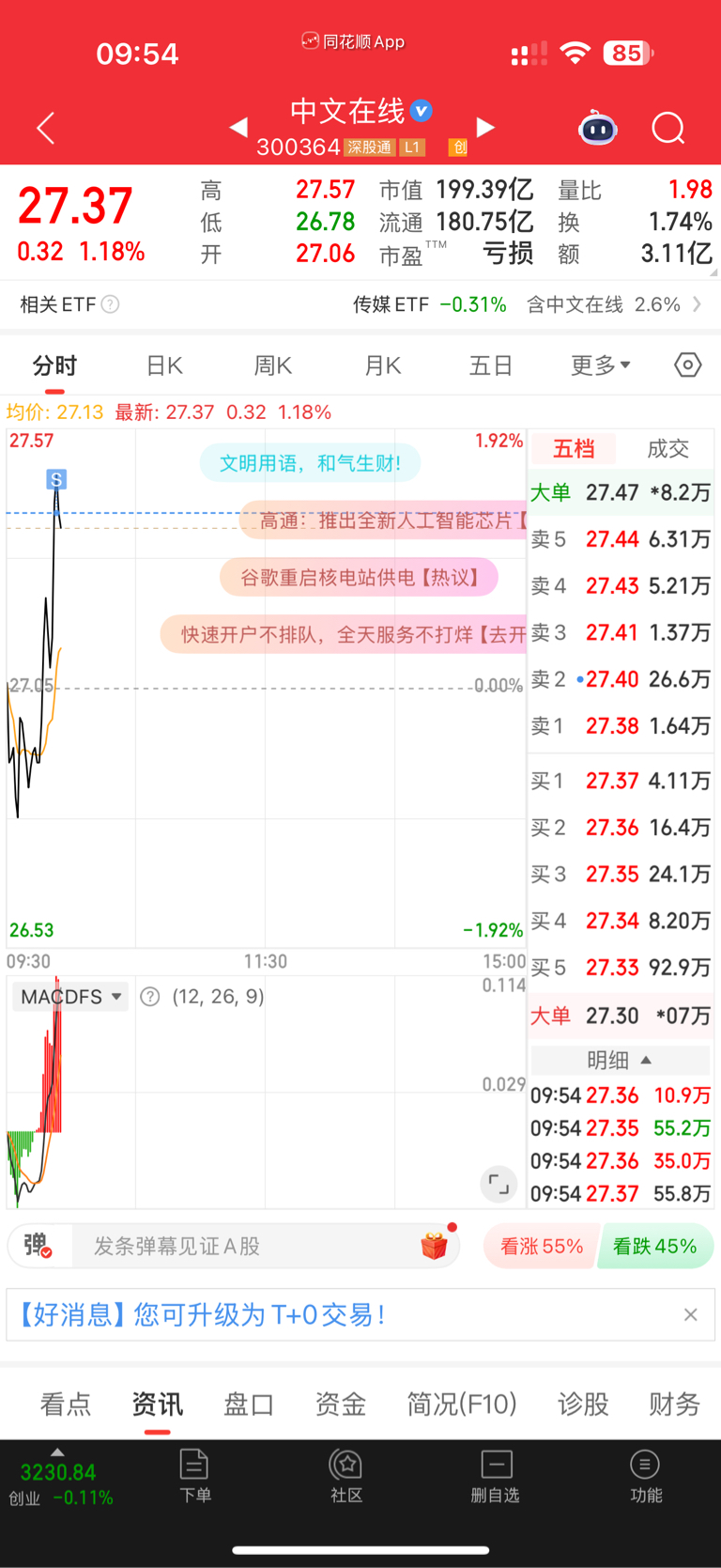 $中文在线(SZ300364)$ 留个底仓,走了,留下的发财,上的有点废劲看着
