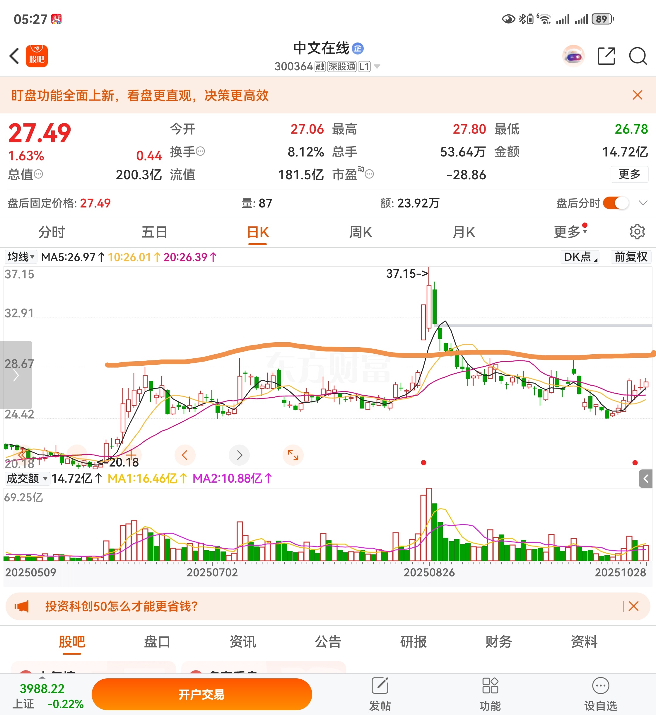 $中文在线(SZ300364)$ 明天还是回调,连个这都看出来,还炒股干啥