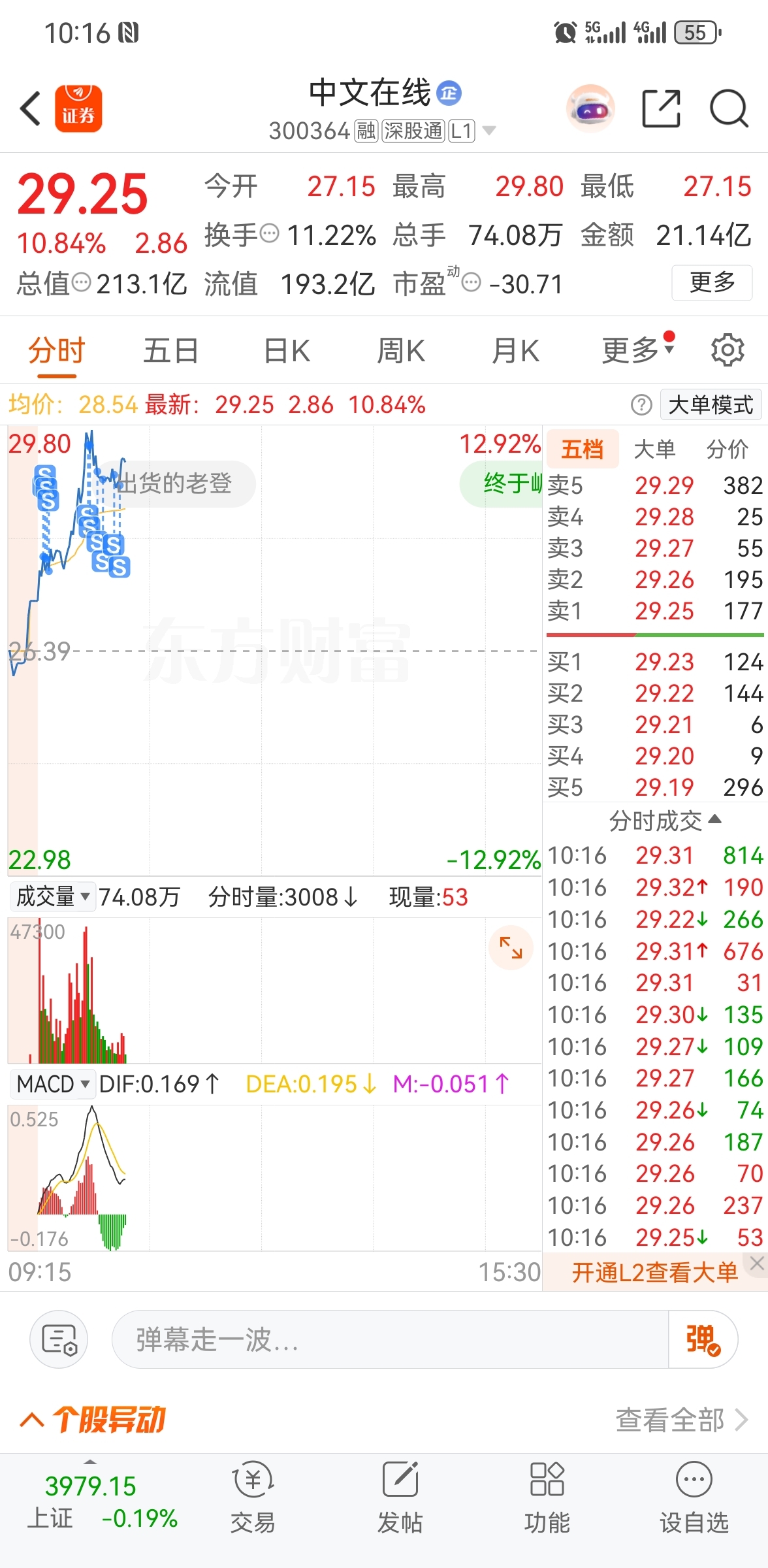 $中文在线(SZ300364)$ 满足了,发财了,谢谢主力,剩余两层等涨停