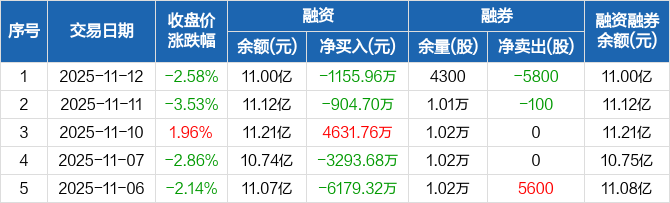 中文在线:融资净偿还1155.96万元,融资余额11亿元(11-12)