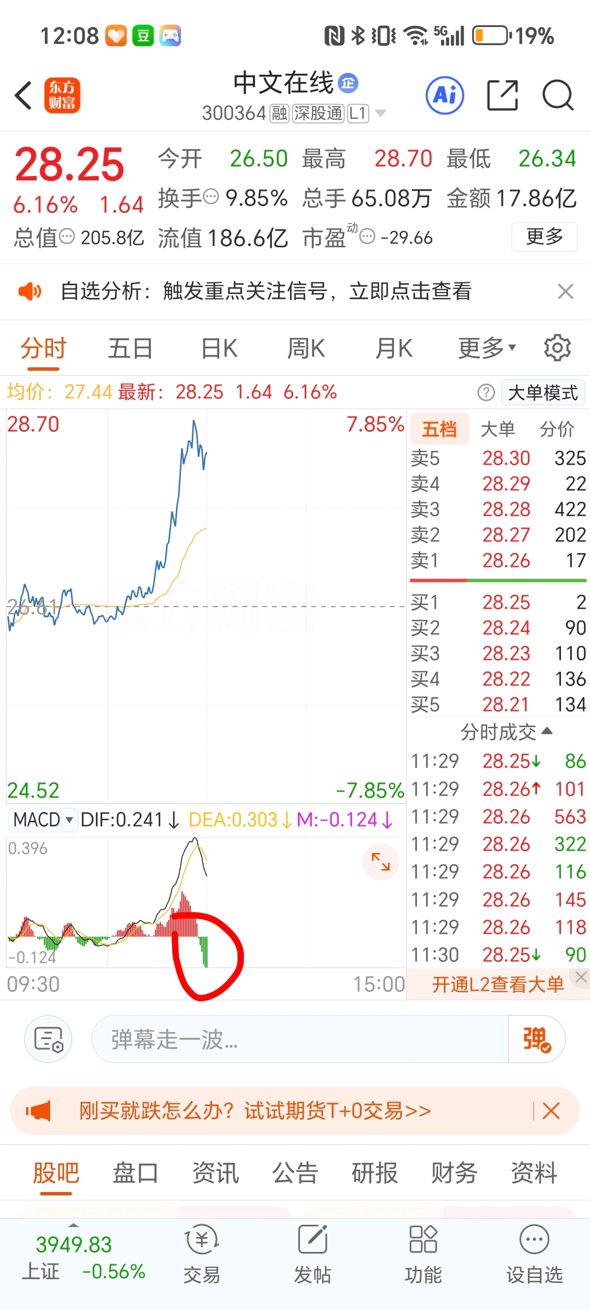 $中文在线(SZ300364)$ MACD已经死叉反转向下了,前一波的量能放完并呈现萎缩状态,突破压力位未果,开始回调。今天应该差不多结束了,震荡充分回调数日可入。