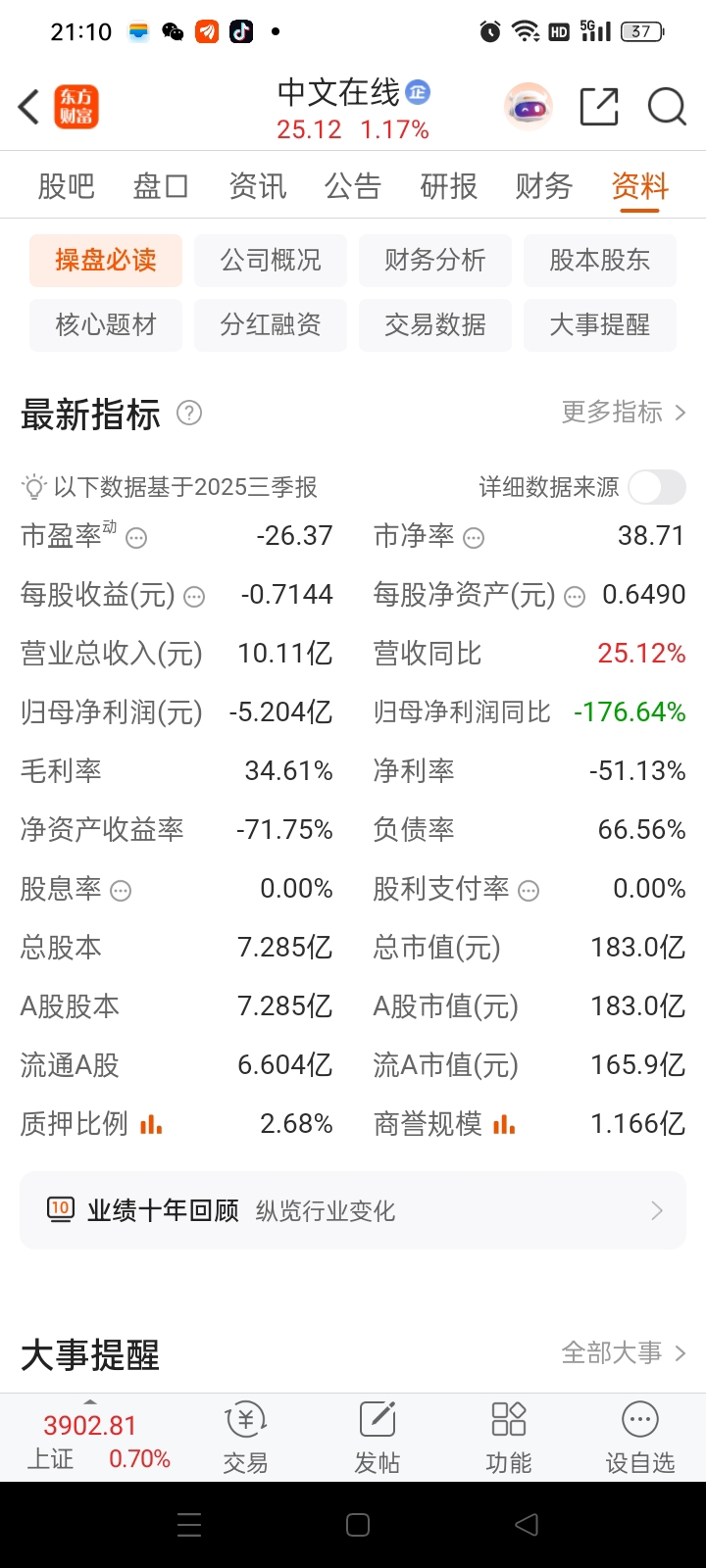 $中文在线(SZ300364)$ 今天很特别25.12点就是他最近25.12收入