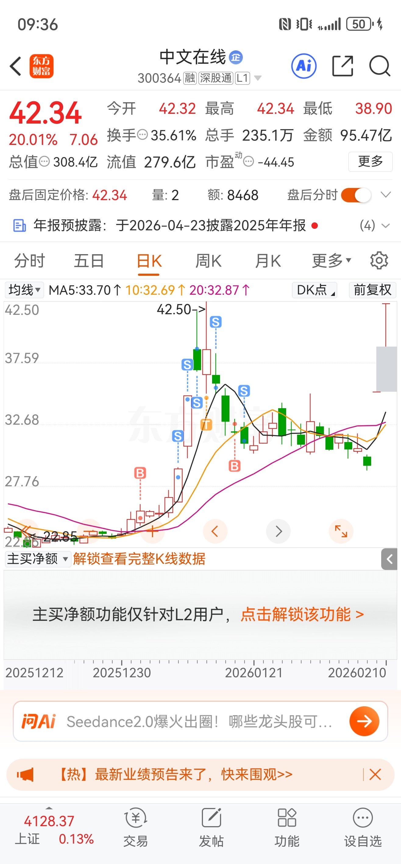 $中文在线(SZ300364)$ 没想到起二波是一字板的形式起的 这票已经给我赚了很多了 很知足