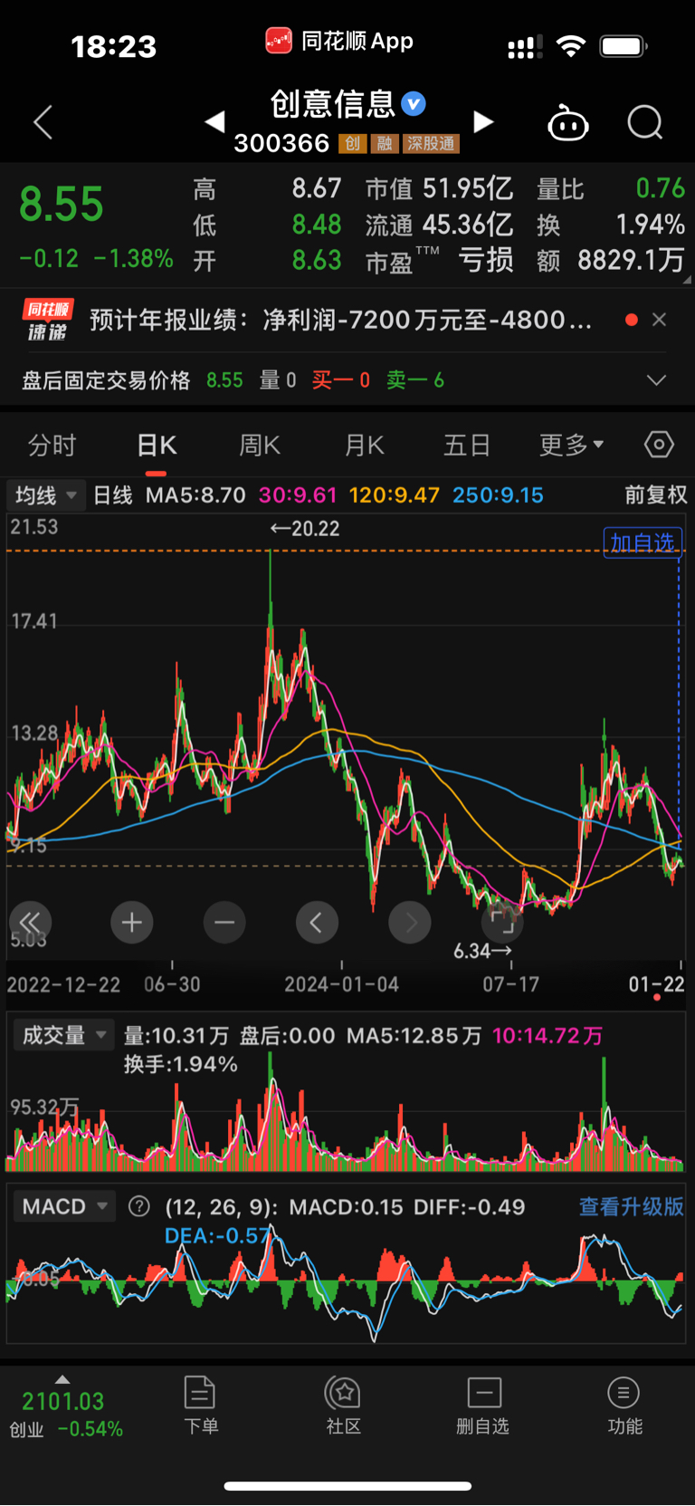 $创意信息(SZ300366)$ 哎,又是巨亏,20.2买的还能回本吗?