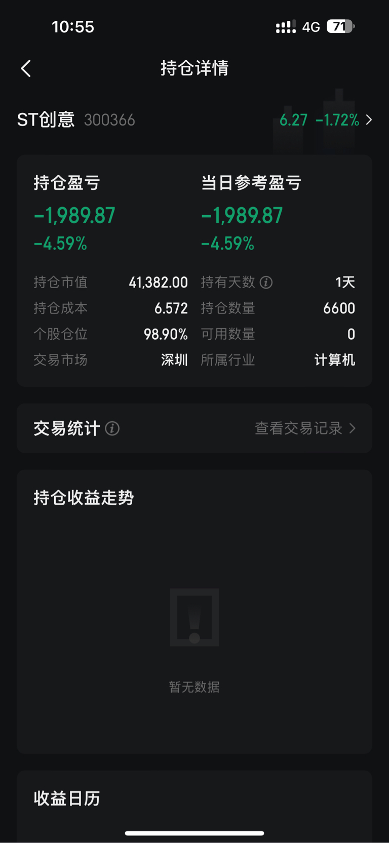 $ST创意(SZ300366)$ 兄弟们都怪我早上红3个点重仓进来把这股干绿了