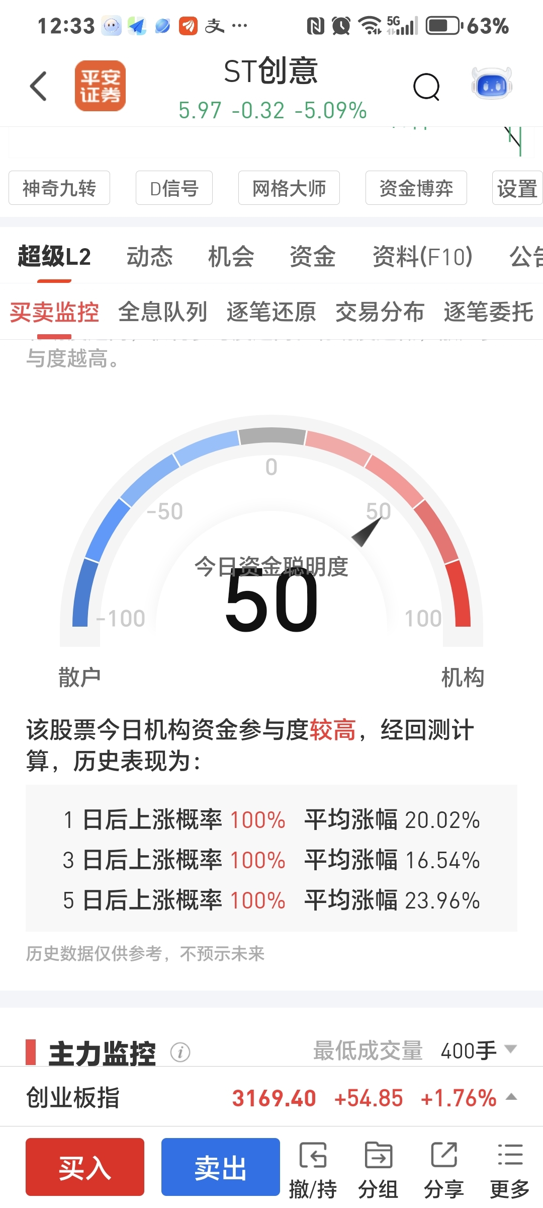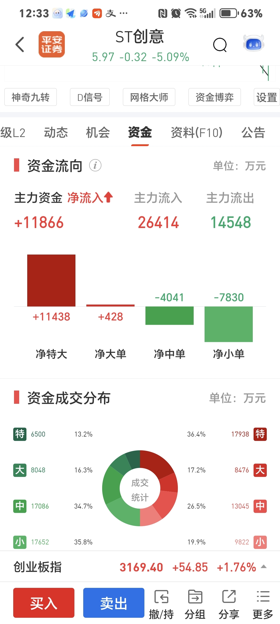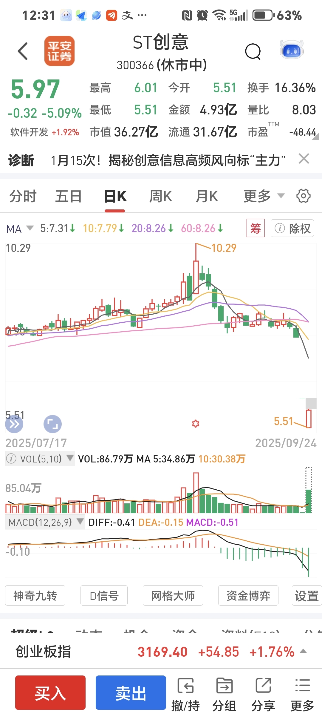 $ST创意(SZ300366)$    早盘低开高走,爆量成交4.93亿,换手率16.36%。散户割肉离场,机构跑步进场。散户落得心安,机构意图挣钱,算得上各得其所。