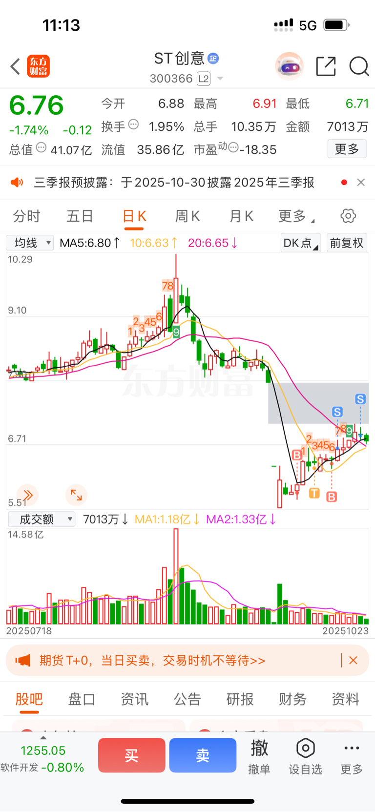 $ST创意(SZ300366)$ 终于回调了,明天再来个急跌就接你回家