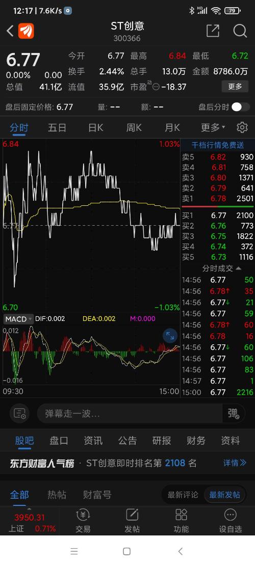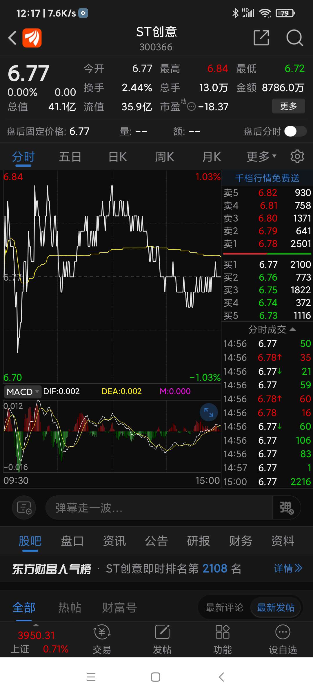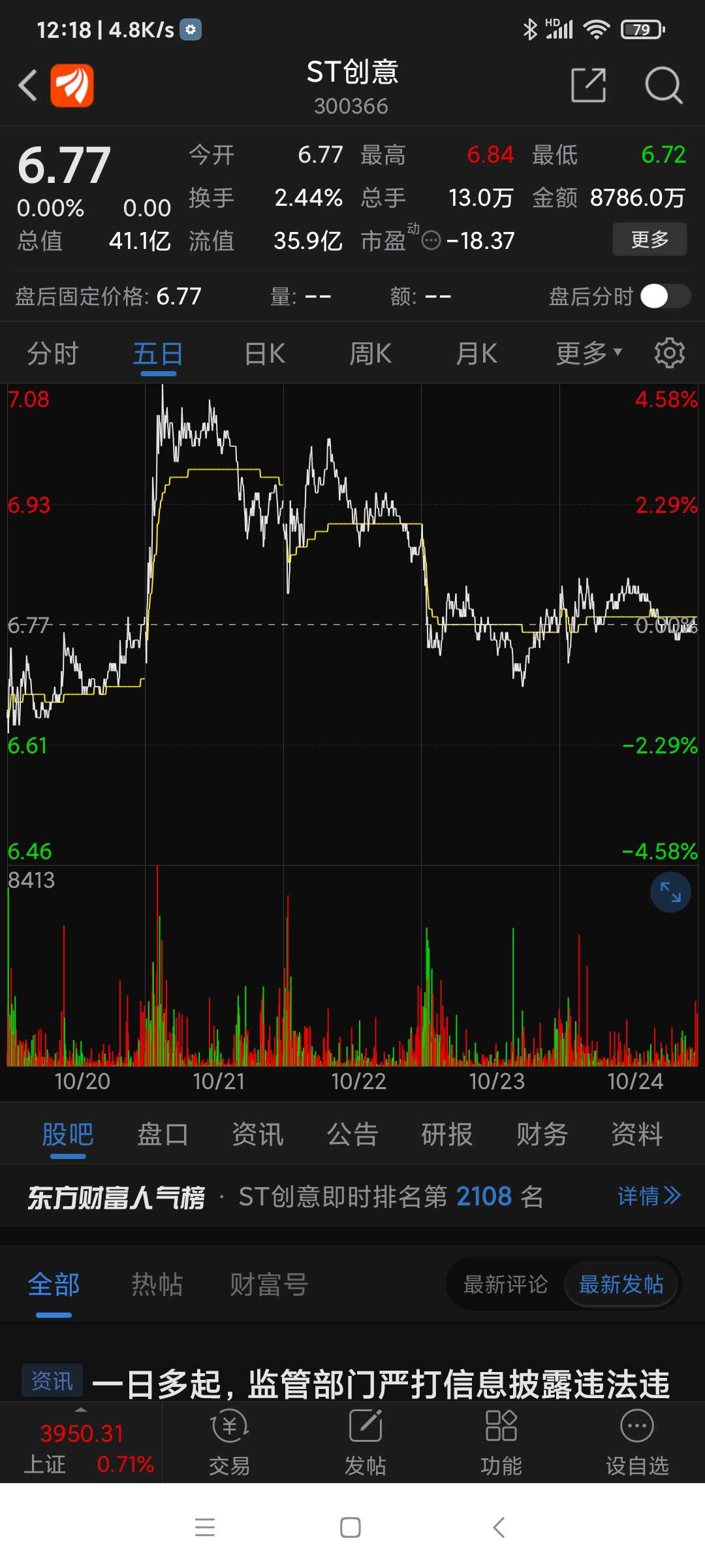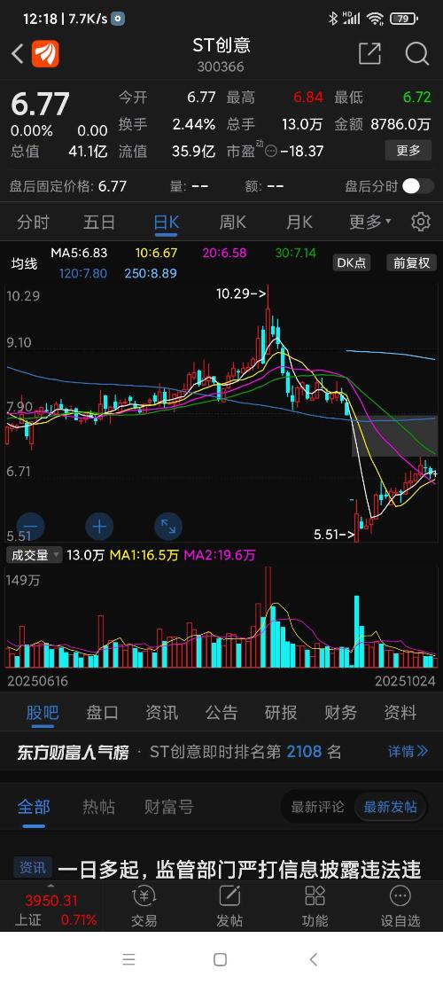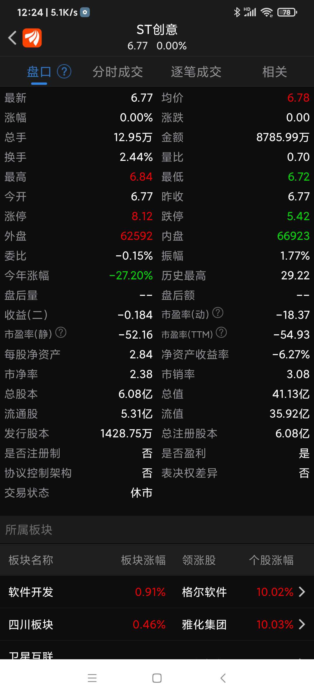 ST创意周五表现不温不火,周五晚处罚利空落地,从此利空出尽是利好,下周最少考验7