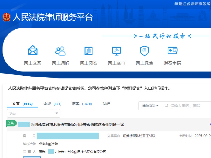 创意信息因涉嫌信息披露违法违规被监管部门立案调查,由此引发的投资者索赔浪潮已正式拉开帷幕!