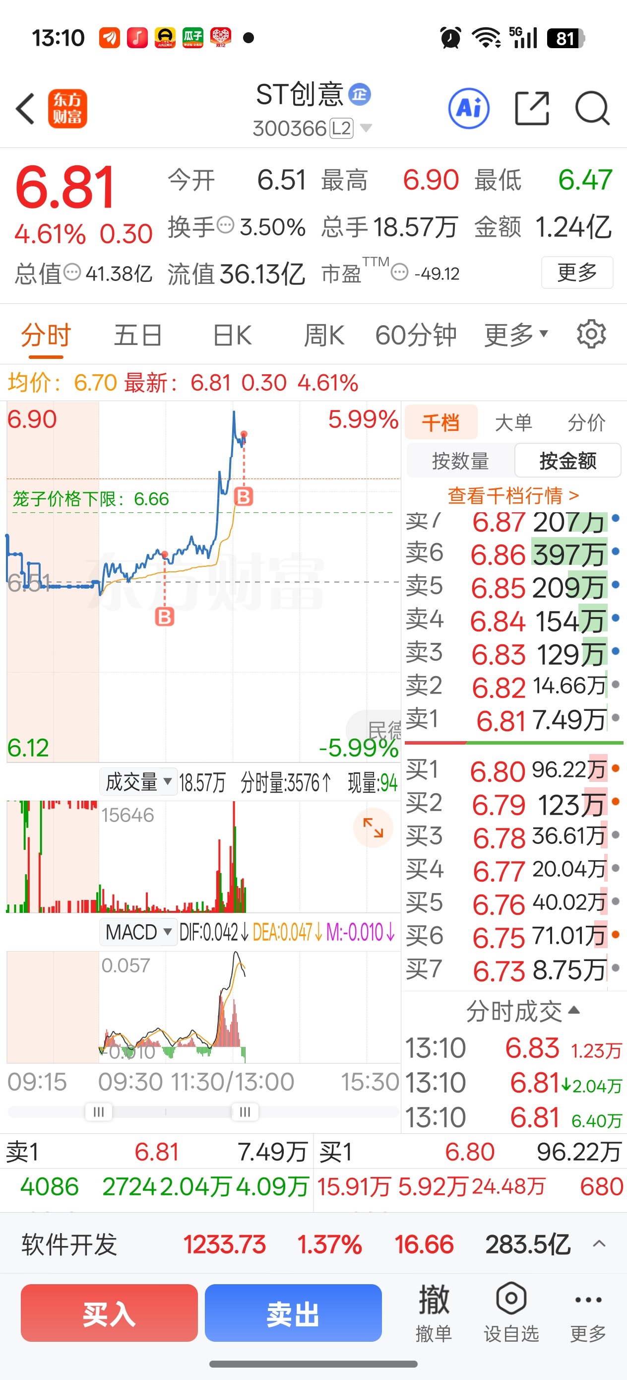 $ST创意(SZ300366)$ 浮盈加仓,重仓猛干