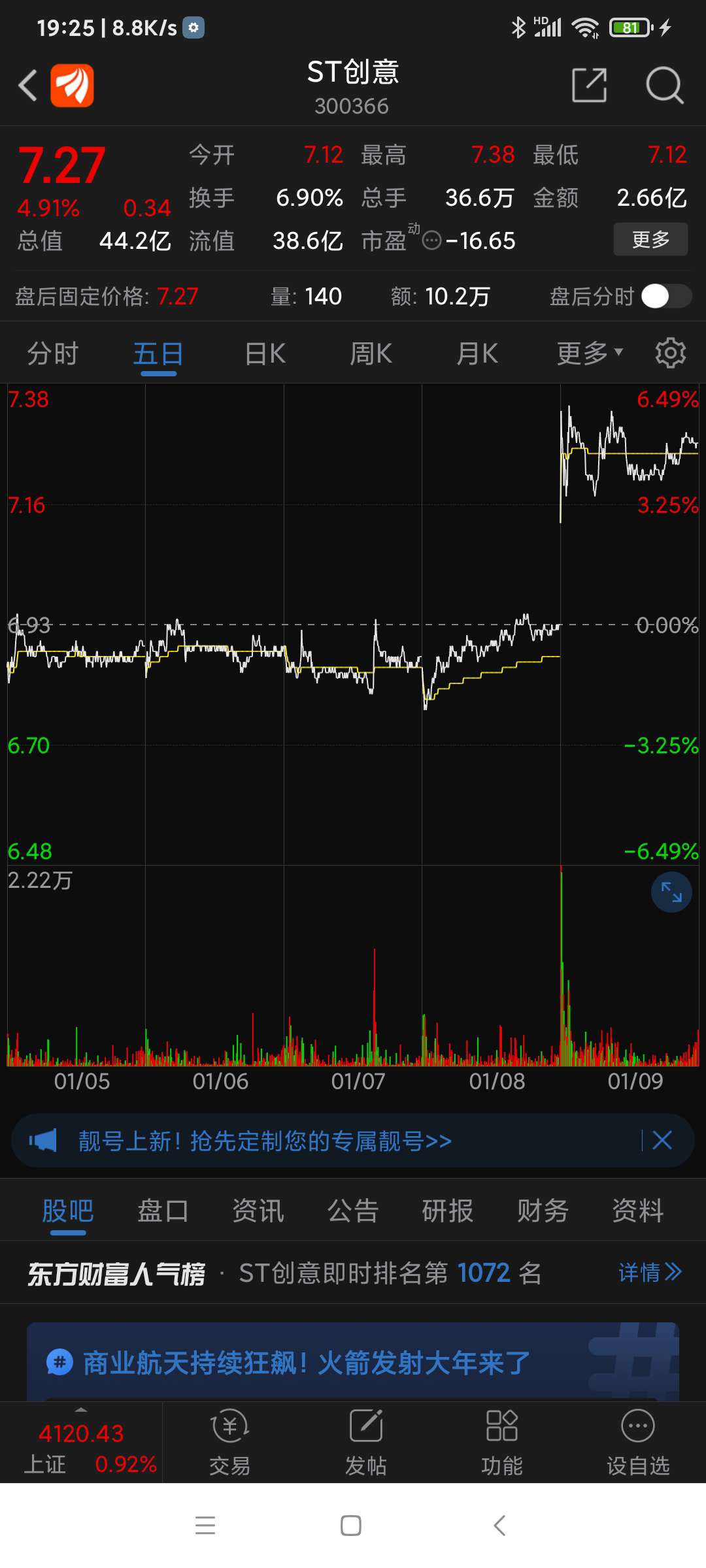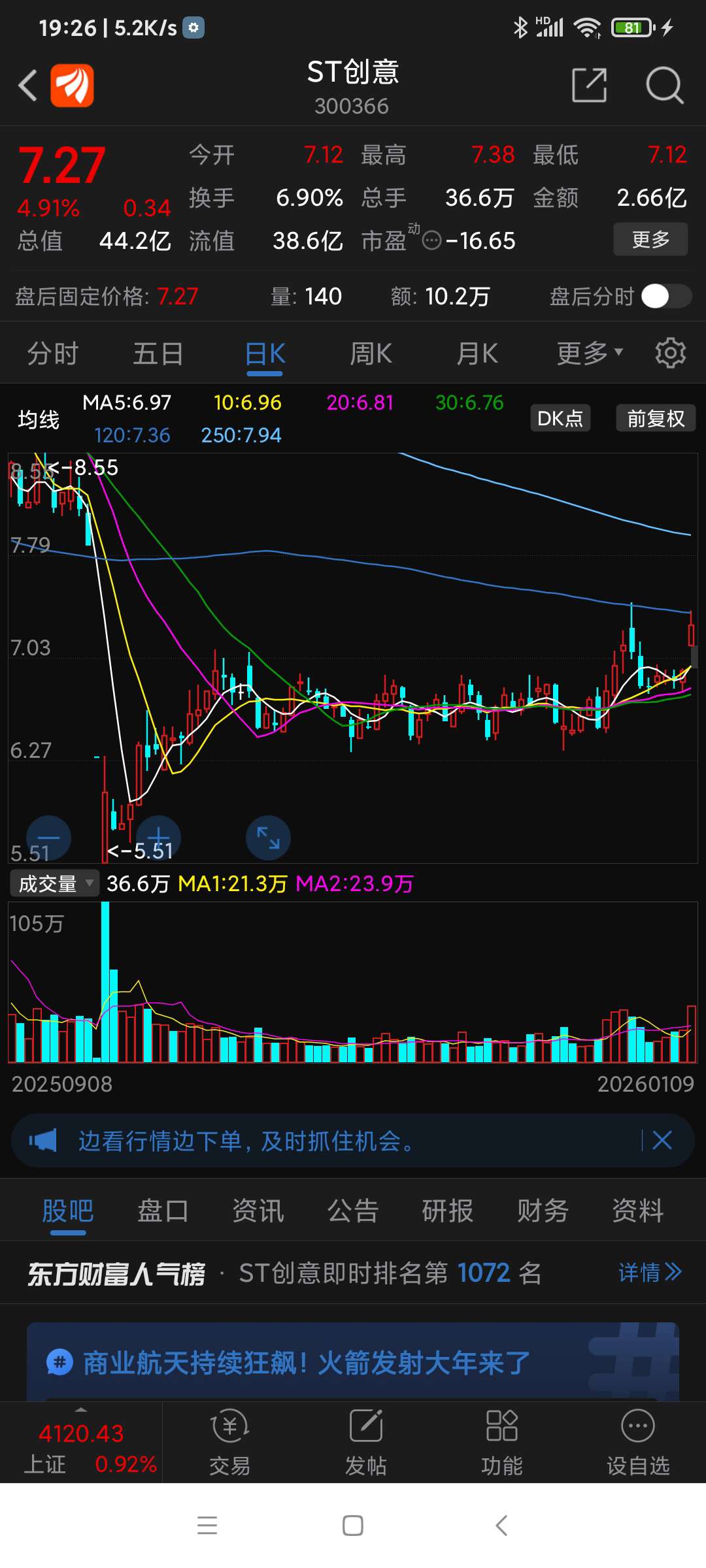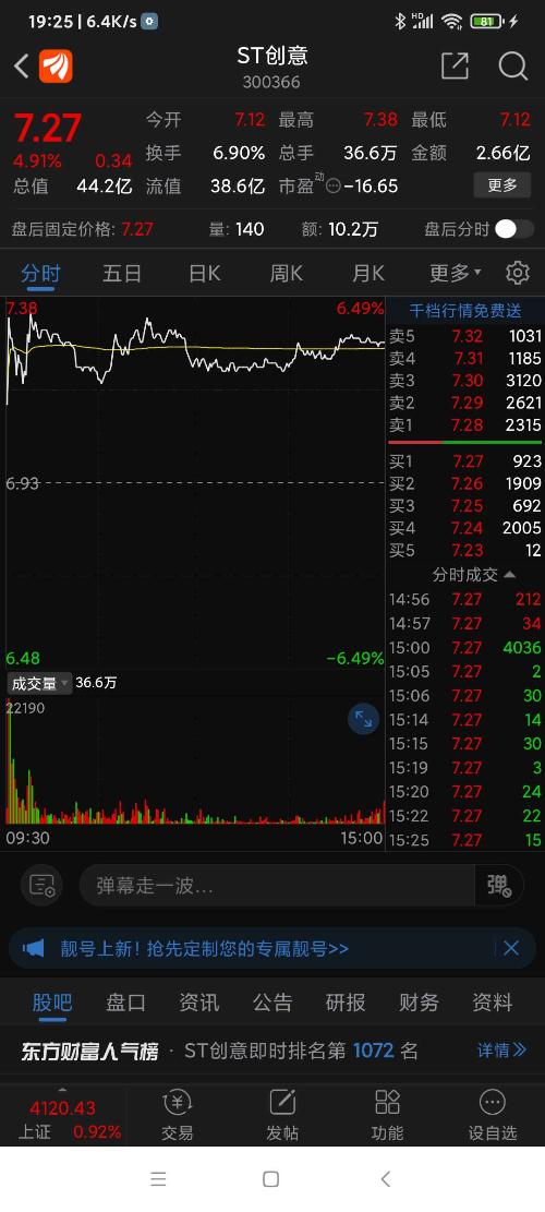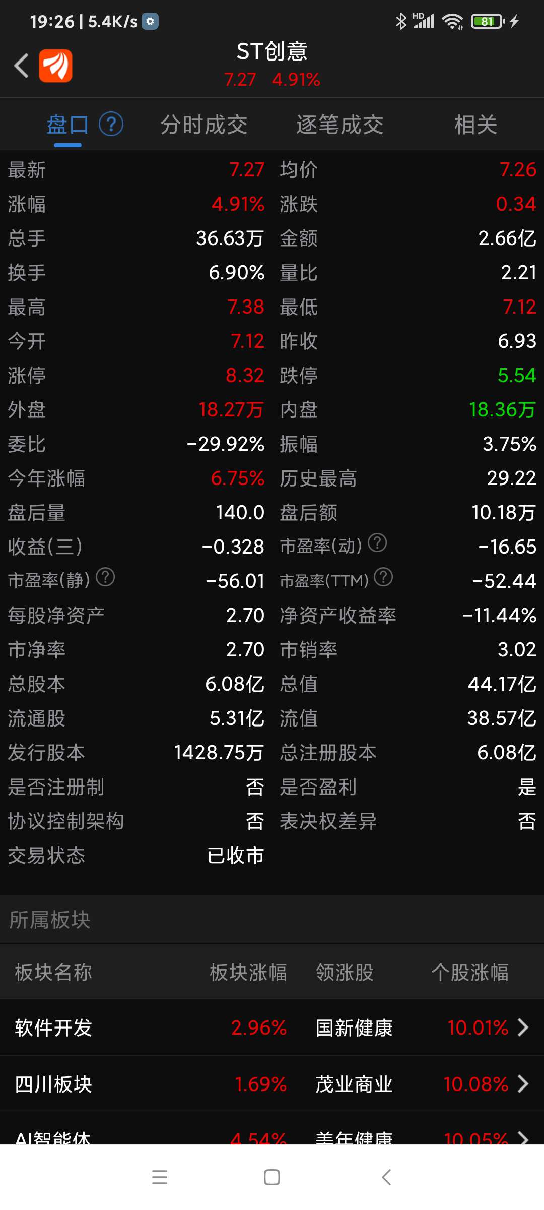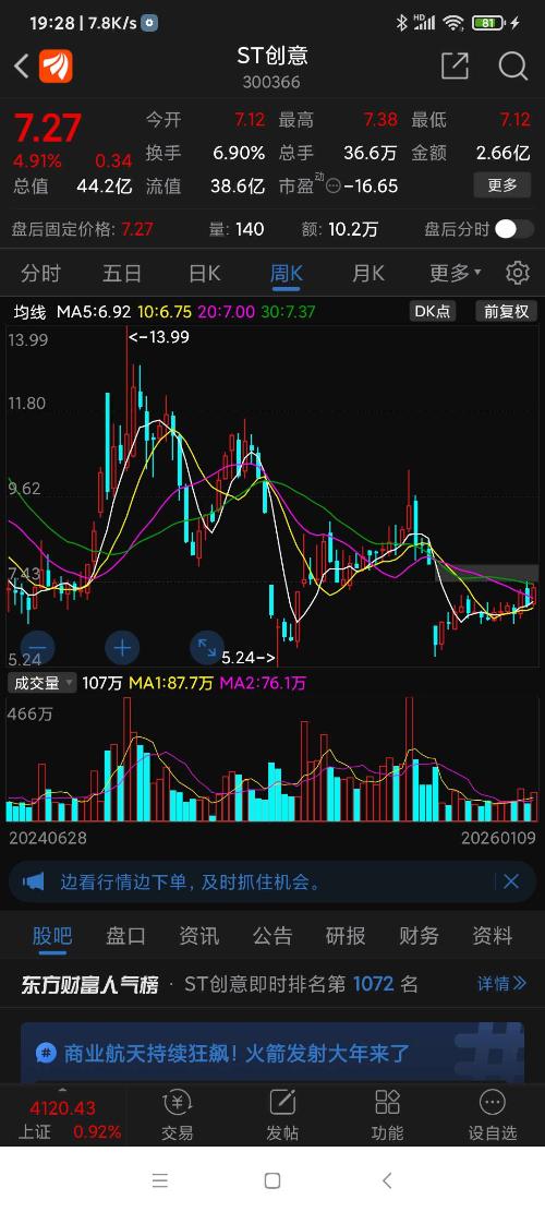 ST创意,今曰因有利好而走强。