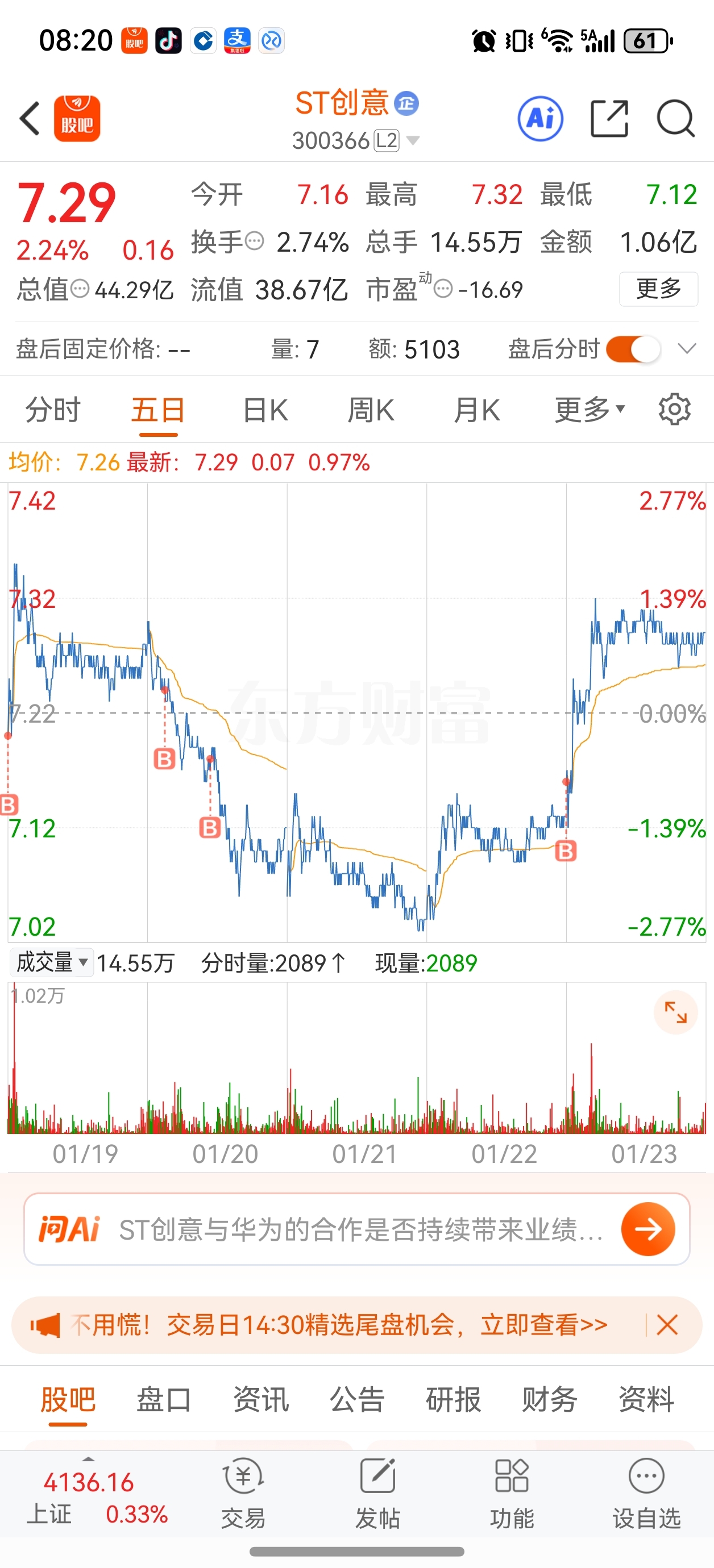 $ST创意(SZ300366)$ 创意给了牛回头的机会,前几天到了8.2大腿怕烂,之前仓位很少,这几天加够了。