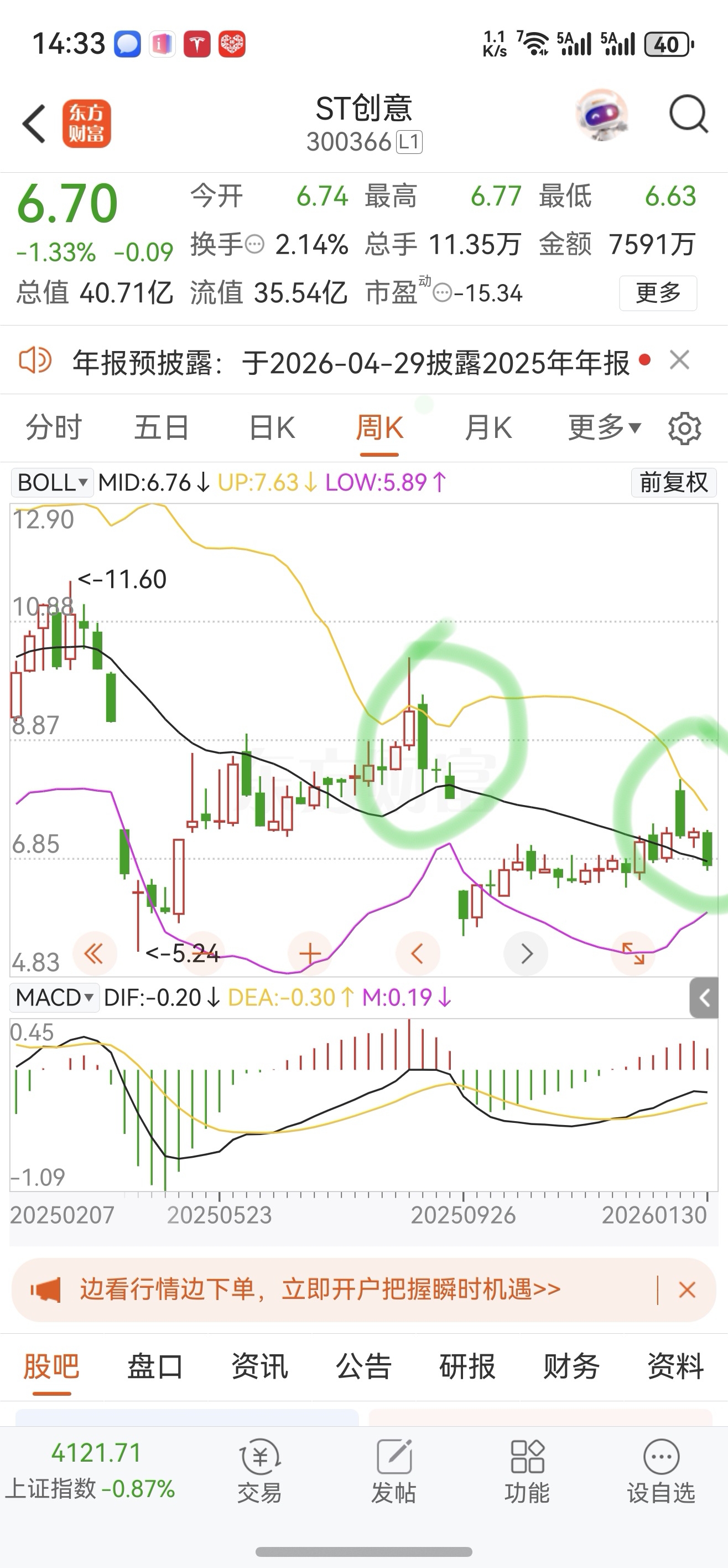$ST创意(SZ300366)$ 怕不怕,周末预告必亏的。下周直接到4.88
