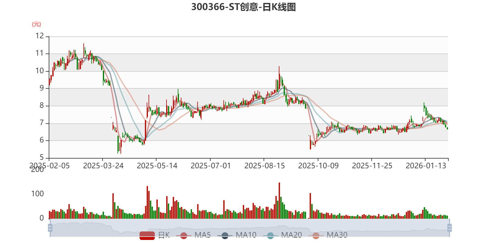 中证智能财讯 ST创意(300366)1月30日晚间披露2025年度业绩预告,预计2025年归母净利润亏损4.4亿元至5.4亿元,上年同期亏损7886.29万元;扣非净利润亏损4.34亿元至5.34亿元,上年同期亏损3.86亿元。以最新收盘价计算,市净率(LF)约2.48倍,市销率(TTM)约2.77倍。