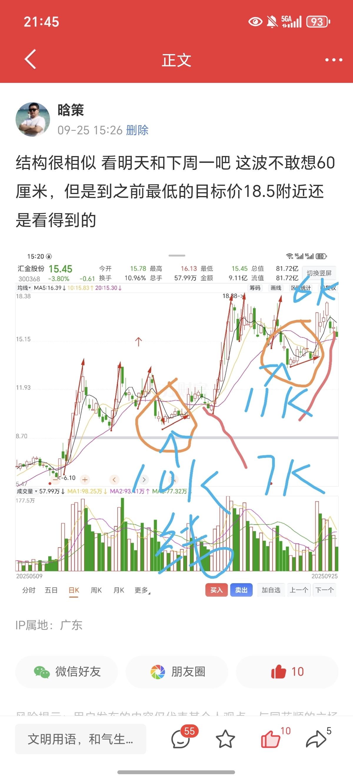 $汇金股份(SZ300368)$ 这图之前不敢发股吧里,在同花顺个人主页顶置了,主力洗盘就别破坏人家,看破不说破,不然洗盘时间会更长,或者增加主力拉升难度,所以就没发,现在可以发了$指南针(SZ300803)$ $同花顺(SZ300033)$