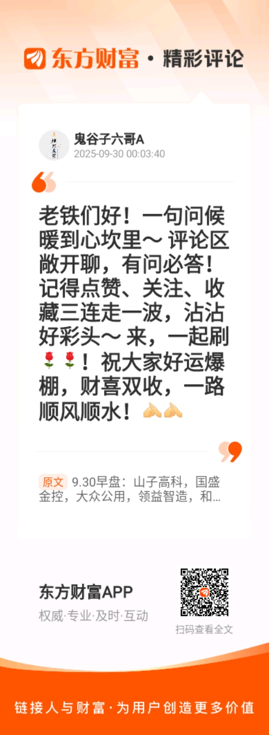 //@鬼谷子六哥A :老铁们好!一句问候暖到心坎里~ 评论区敞开聊,有问必答!记得点赞、关注、收藏三连走一波,沾沾好彩头~ 来,一起刷