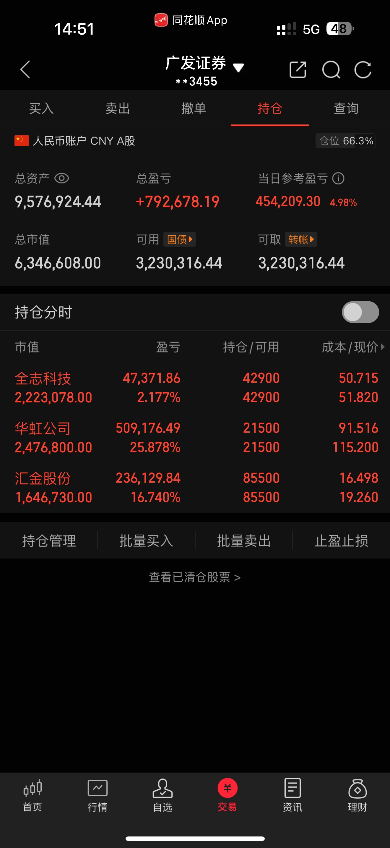 $汇金股份(SZ300368)$ $华虹公司(SH688347)$ $全志科技(SZ300458)$ #炒股日记# #股市怎么看# #光刻机反复走强!行情规模有多大?# #长假来临,持股过节还是持币过节?# #黄金价格创历史新高!黄金股怎么投?#
