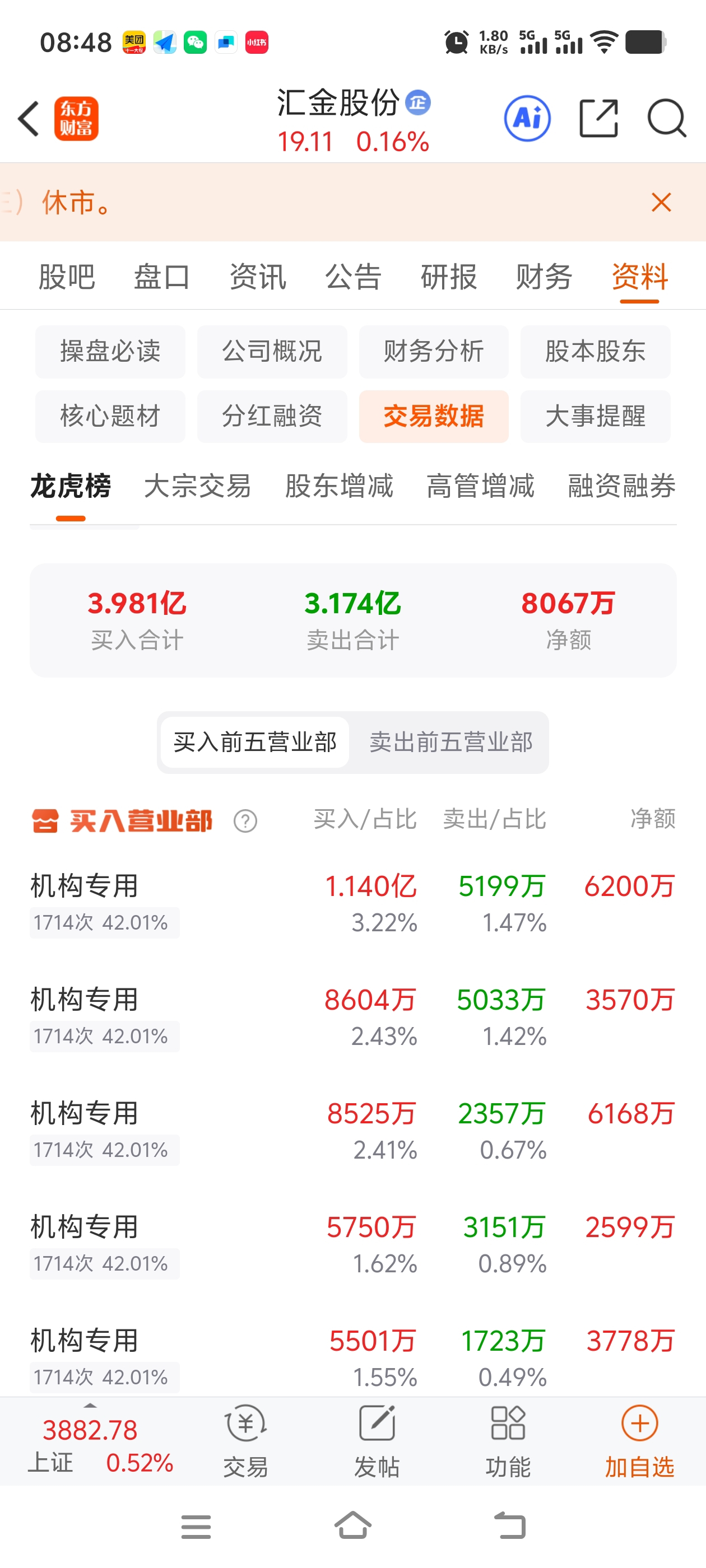$汇金股份(SZ300368)$ 都是机构,大家来分析汇金股份的龙虎榜