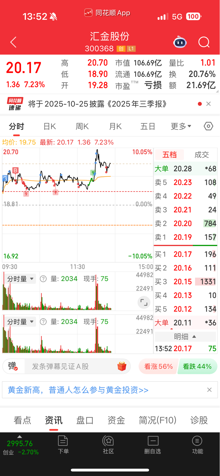$汇金股份(SZ300368)$ 笑嘻嘻