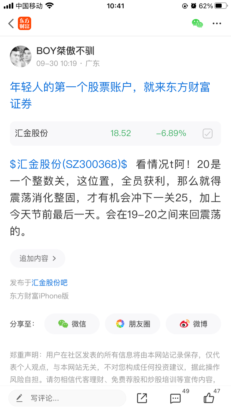 温馨提示: 1.根据《证券法》规定,禁止编造、传播虚假信息或者误导性信息,扰乱证券市场;2.用户在本社区发表的所有资料、言论等仅代表个人观点,与本网站立场无关,不对您构成任何投资建议。用户应基于自己的独立判断,自行决定证券投资并承担相应风险。《东方财富社区管理规定》