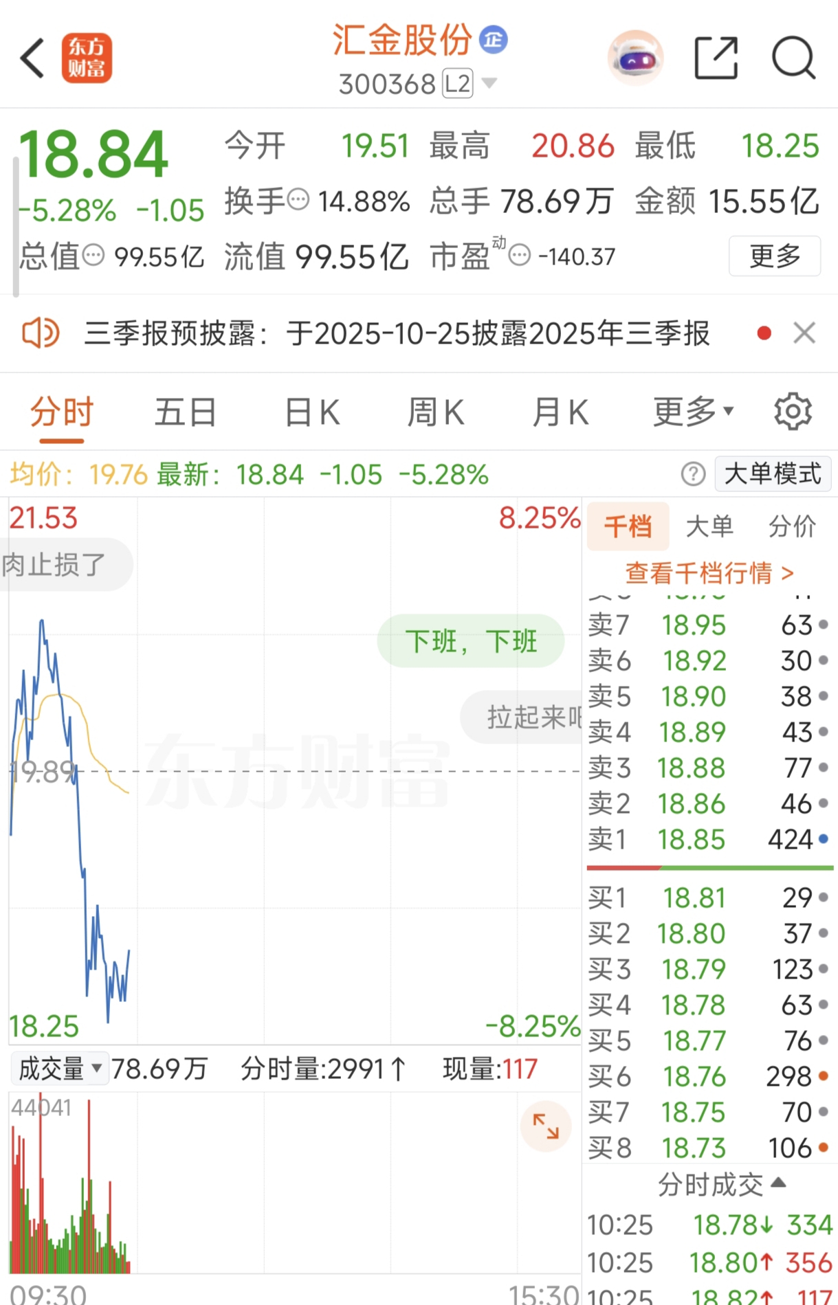 $汇金股份(SZ300368)$ 竞价买的不用慌,今天指数必跳水,小金子是逆子保持短期破21目标不变
