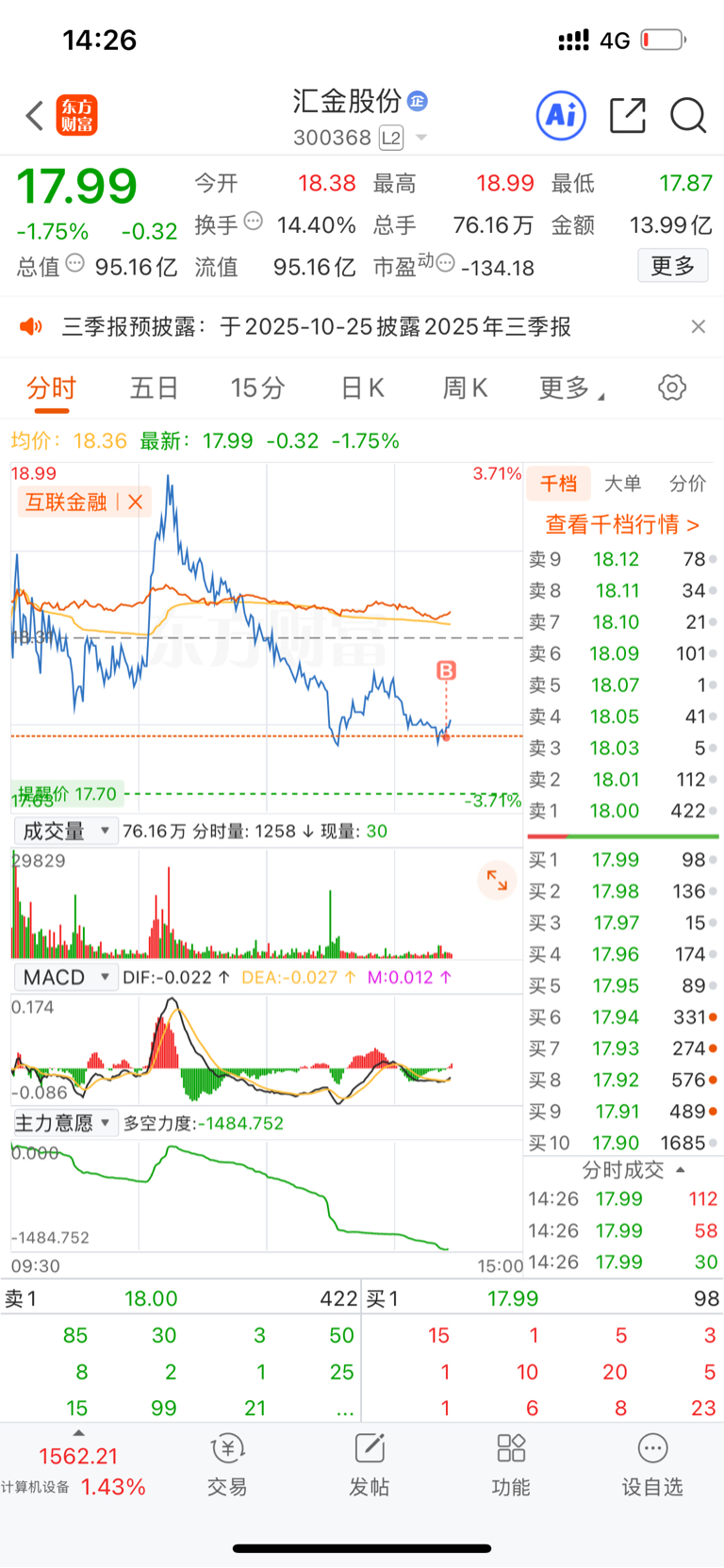 $汇金股份(SZ300368)$ 祝我好运,看看美联储晚上的会议能不能给点力