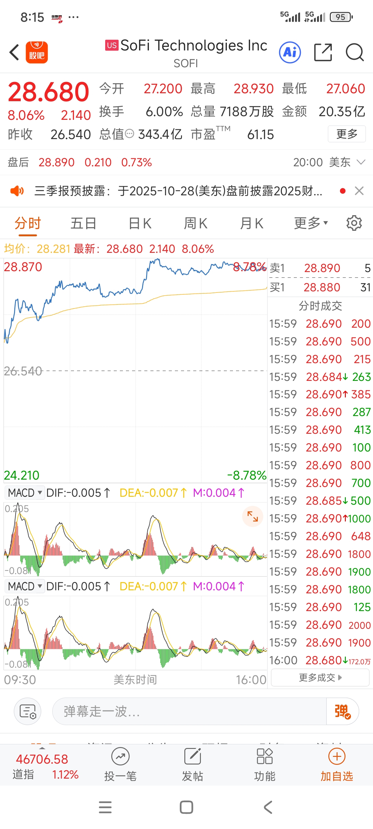 $汇金股份(SZ300368)$ 美股大金融龙头大涨8个多点