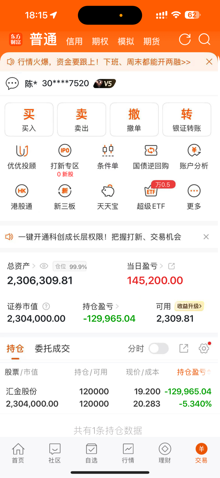 $汇金股份(SZ300368)$ 最近亏的有点多,都不想更新,目前还亏损5%左右。希望明天继续上涨
