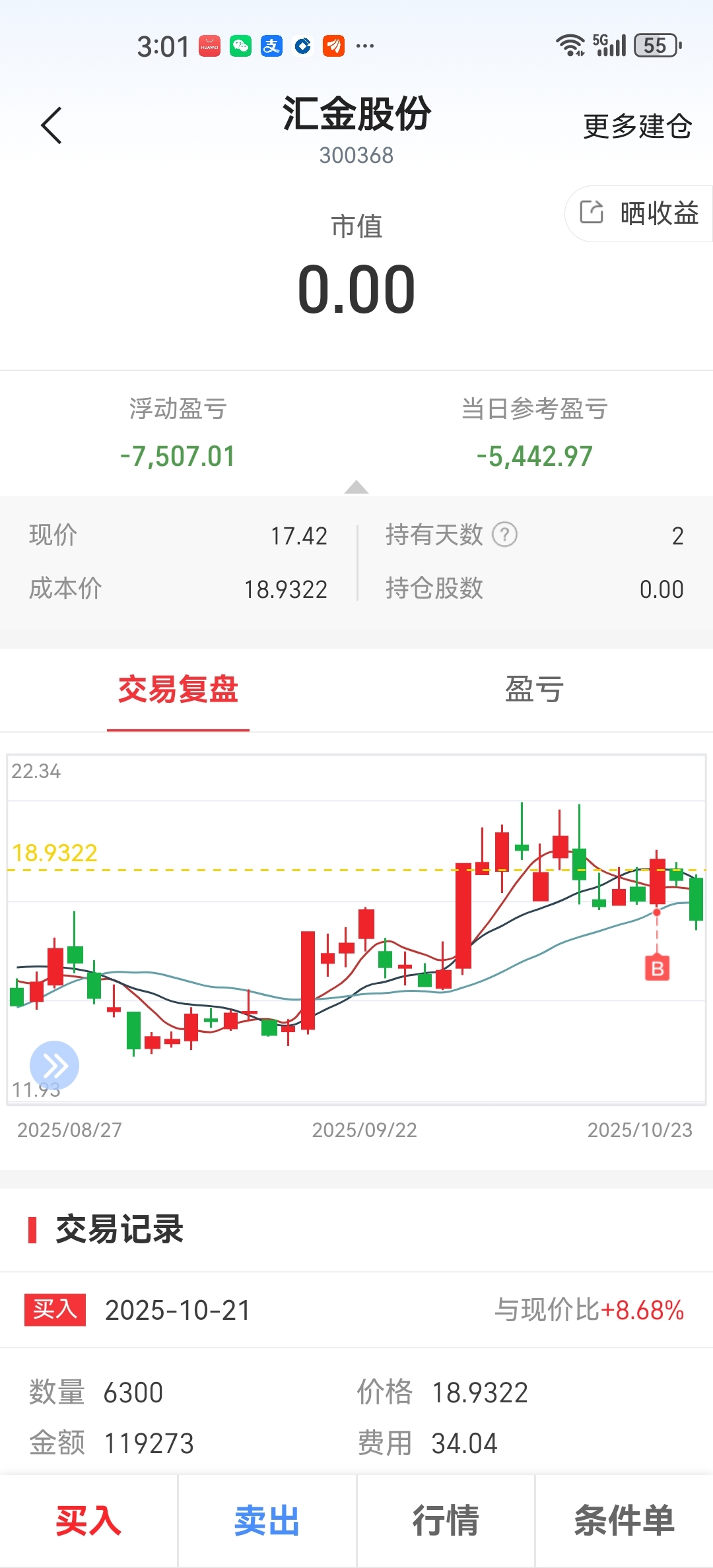 $汇金股份(SZ300368)$ 今天第三天亏了7个点……被这票坑死了