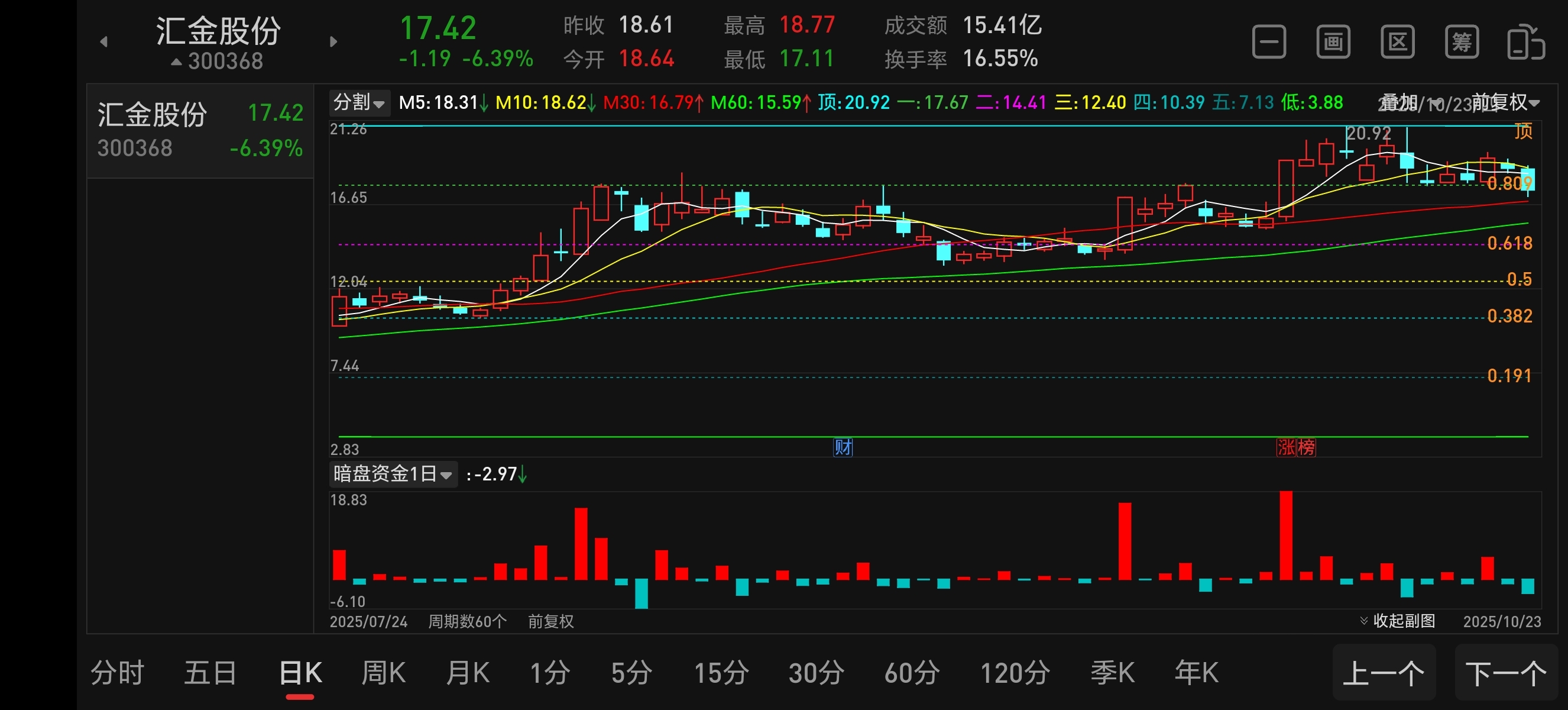 $汇金股份(SZ300368)$ 明天站上17.70这个支撑位很重要,只要修复那就是黄金坑,目标30点。