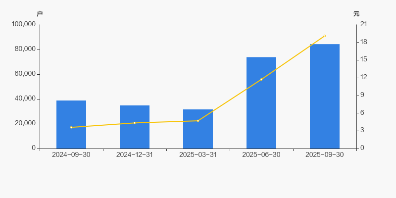 2024年9月30日至今,公司股东户数成倍增长,区间涨幅达117.48%。2024年9月30日至2025年9月30日区间股价上涨432.31%。