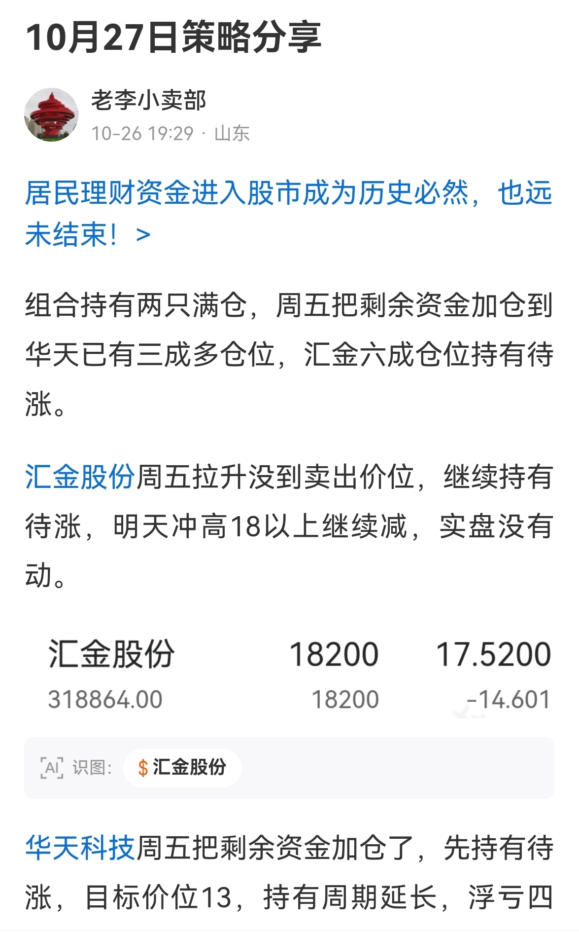 $汇金股份(SZ300368)$ 低开不用担心,还有拉升减仓机会,详见27日策略分享。