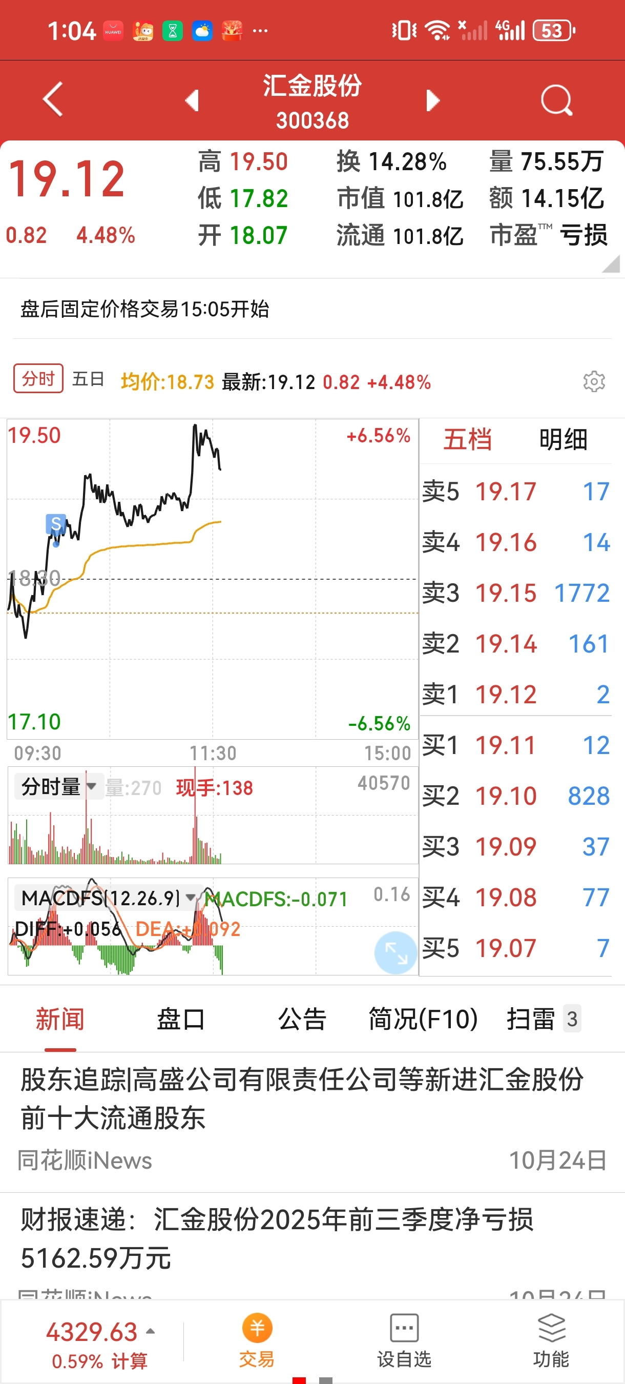 $汇金股份(SZ300368)$ 卖飞了