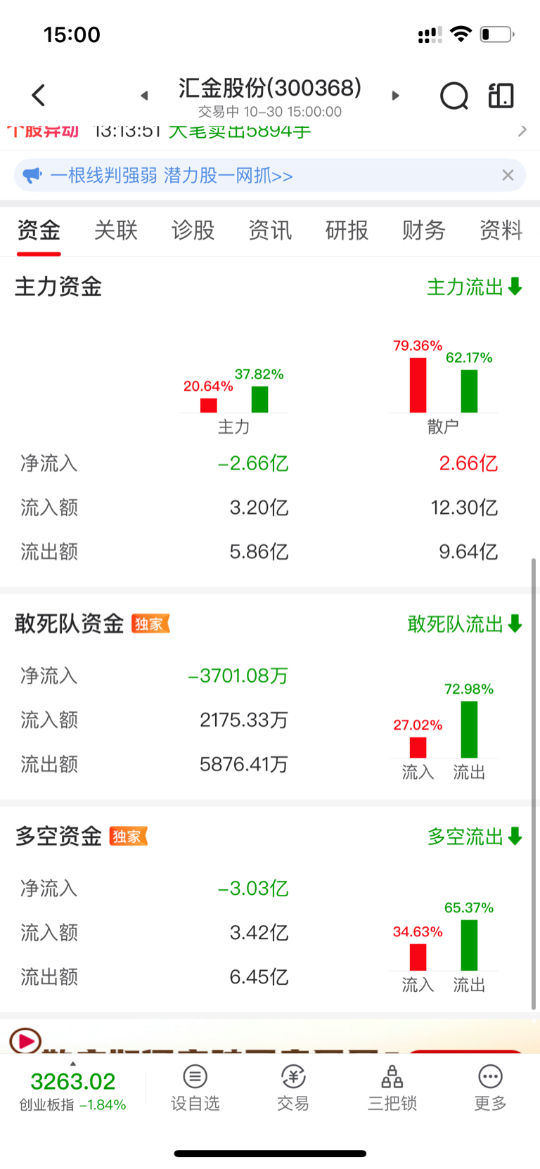 $汇金股份(SZ300368)$ 今日资金流出,自己看!