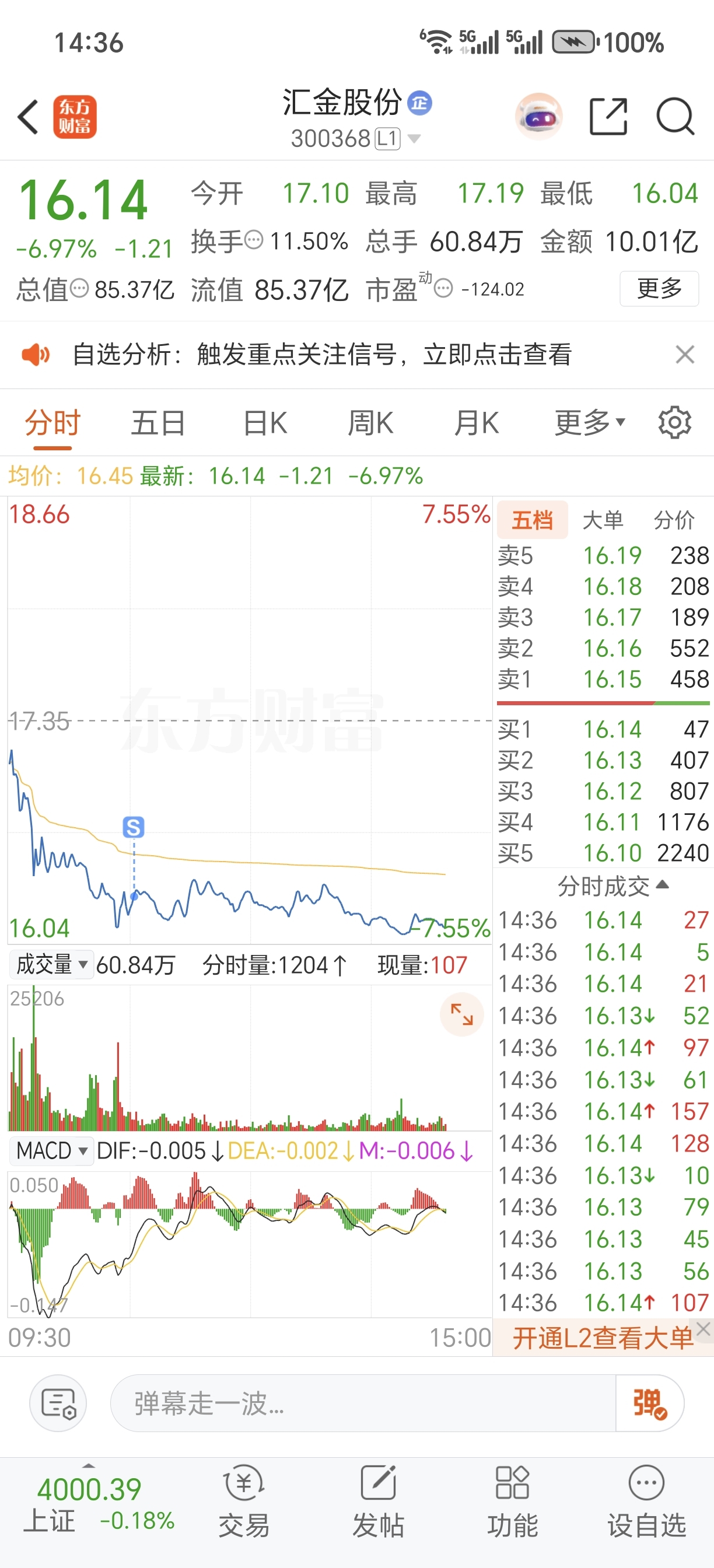 $汇金股份(SZ300368)$ 今天本来在你这里亏成狗,没想到。。。