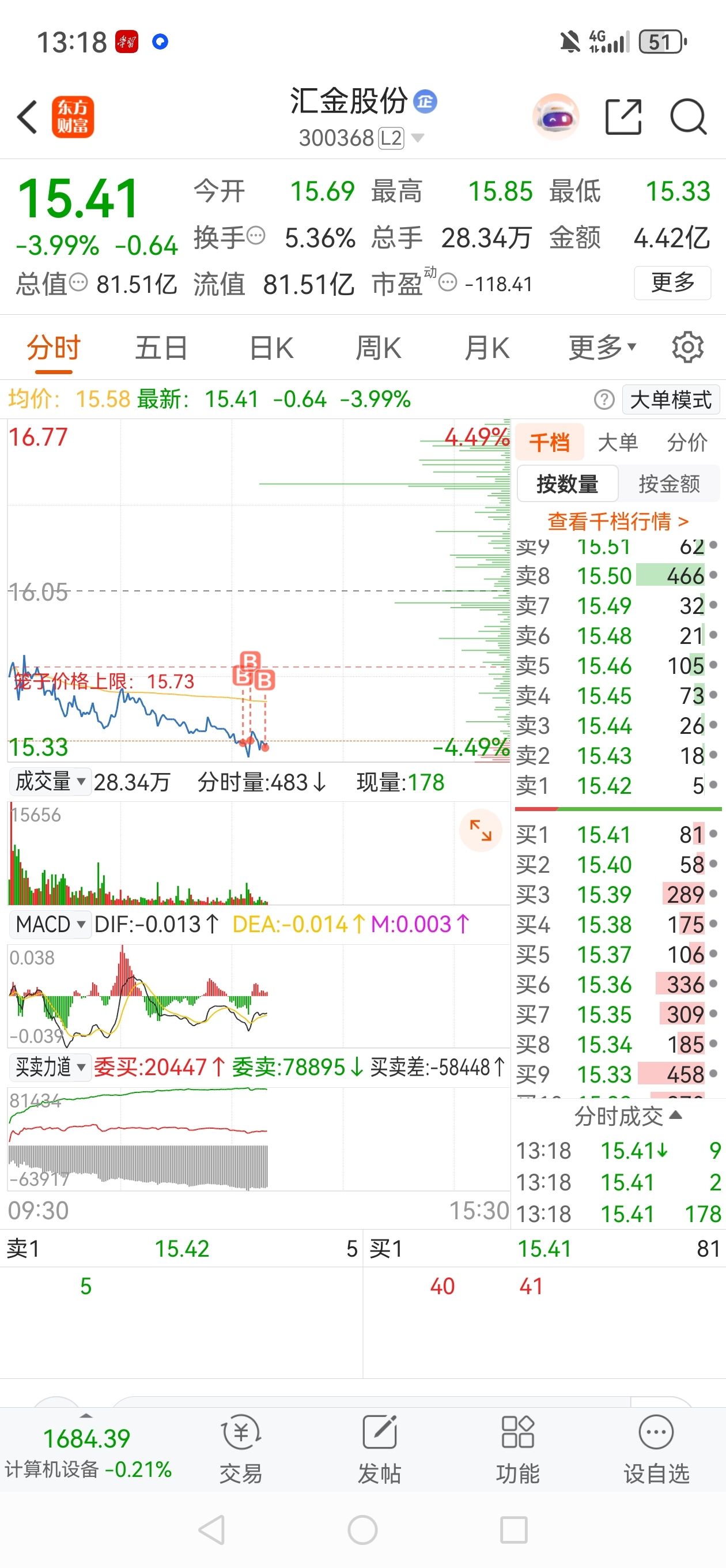 $汇金股份(SZ300368)$ 来了。搏一搏。跌了这么久了。昨天试盘。今天入住。