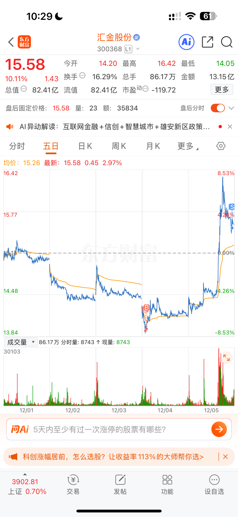 $汇金股份(SZ300368)$ 完美的操作 落袋了