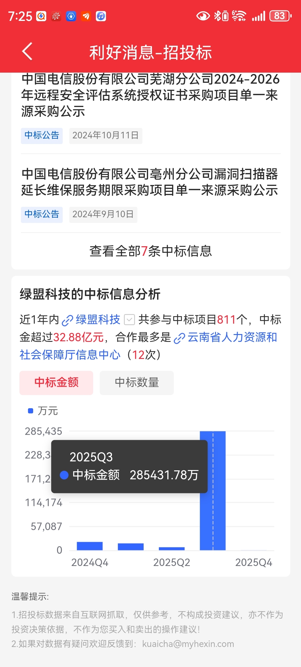 $绿盟科技(SZ300369)$ 同花顺看到的数据,真实的吗?3季度中标金额远超前2个季度,也远超去年,比去年全年还多