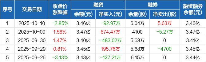 绿盟科技:融资净偿还92.97万元,融资余额3.46亿元(10-10)