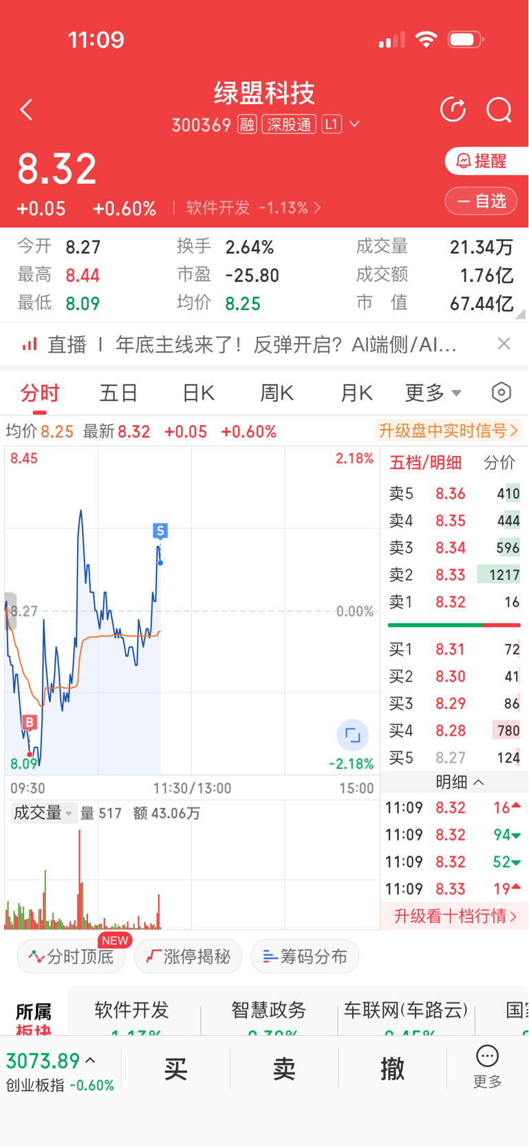 $绿盟科技(SZ300369)$ 做T降低成本!!!