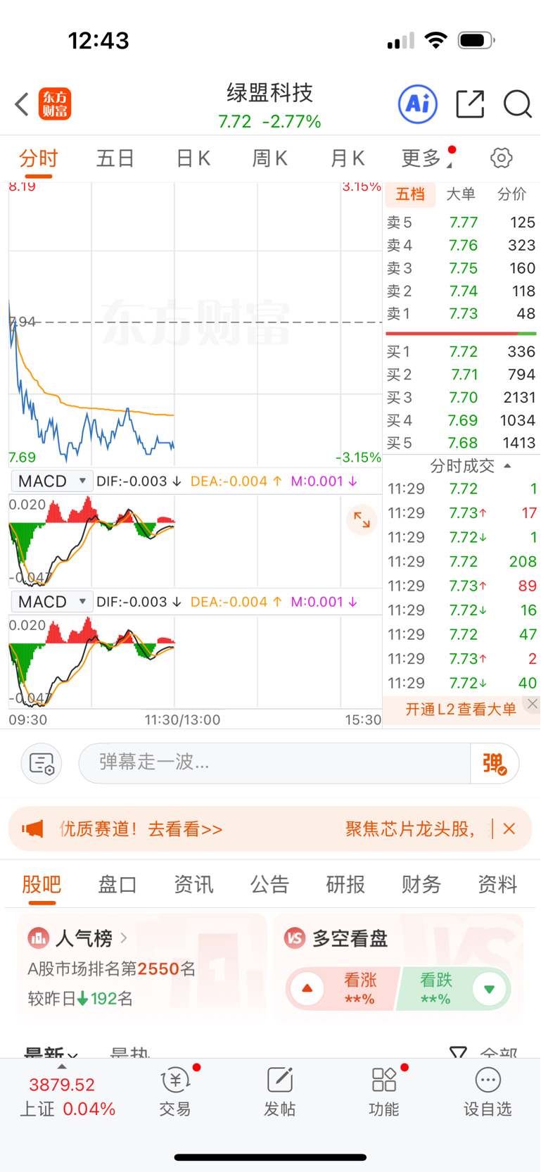 价钱7.72,跌了-2.77%,这庄家好会来事!!!