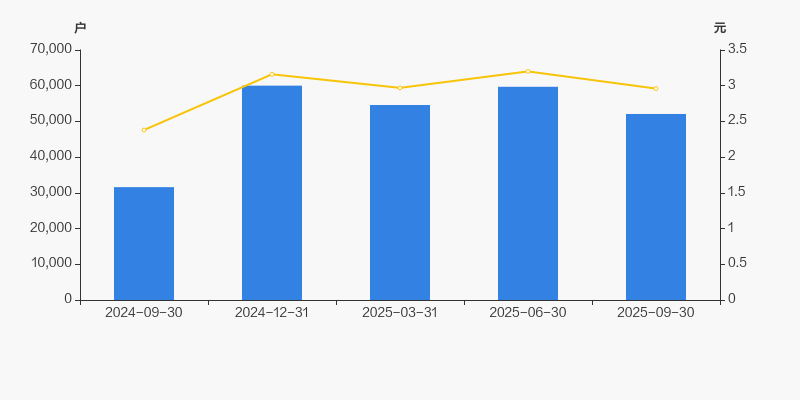 2024年9月30日至今,公司股东户数显著大幅增长,区间涨幅达64.83%。2024年9月30日至2025年9月30日区间股价上涨24.37%。