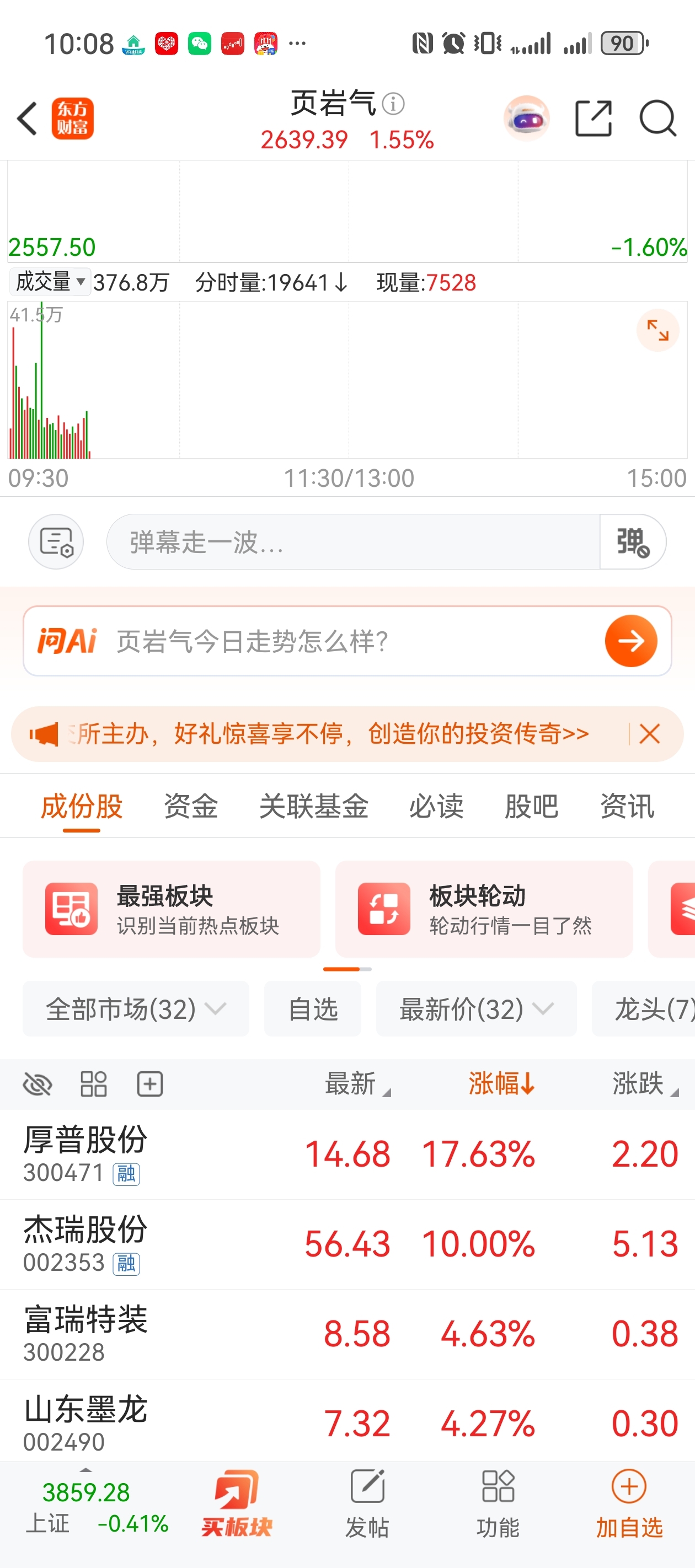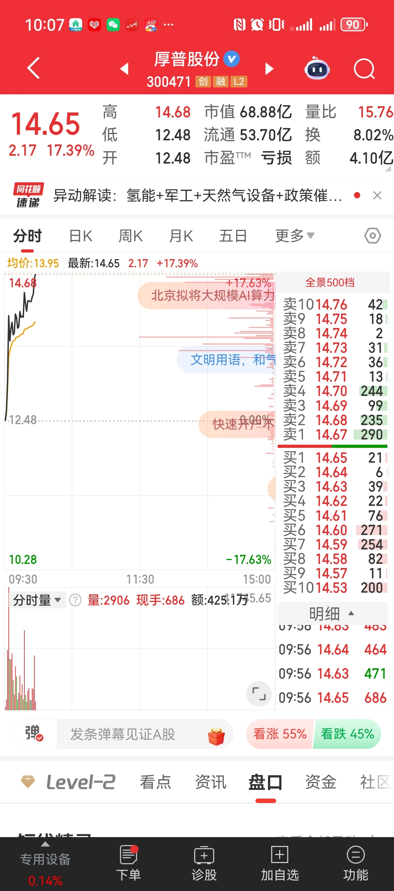 两市之中价位最低的页岩气概念,同为四川的上市公司厚普股份即将20cm涨停,安控科