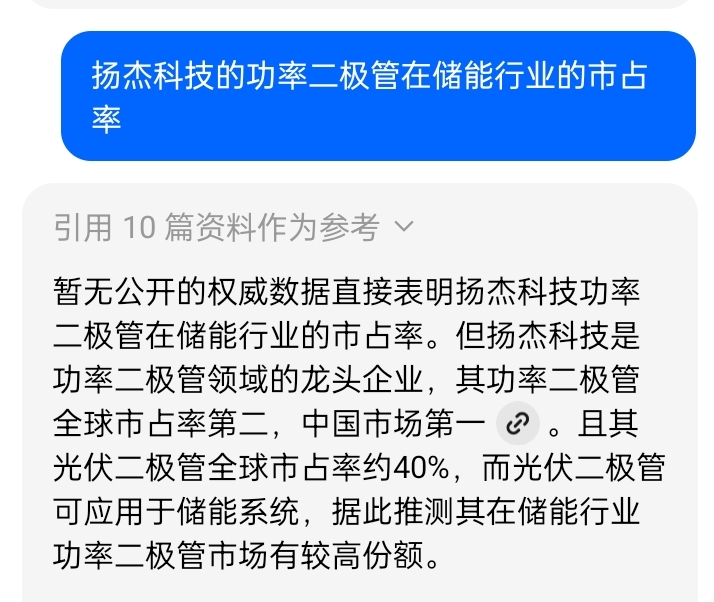 $扬杰科技(SZ300373)$ 储能行业全球市占率40%