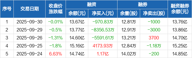 扬杰科技:连续3日融资净偿还累计1.49亿元(09-30)
