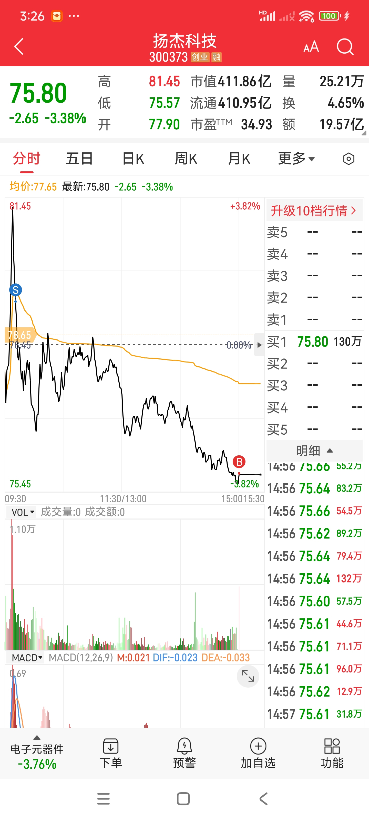 $扬杰科技(SZ300373)$ 我的杨姐可能要调整了,歇歇吧,主要是大盘和板块不行,谢谢杨姐这些天的陪伴,剩下一手做纪念,择时再相会