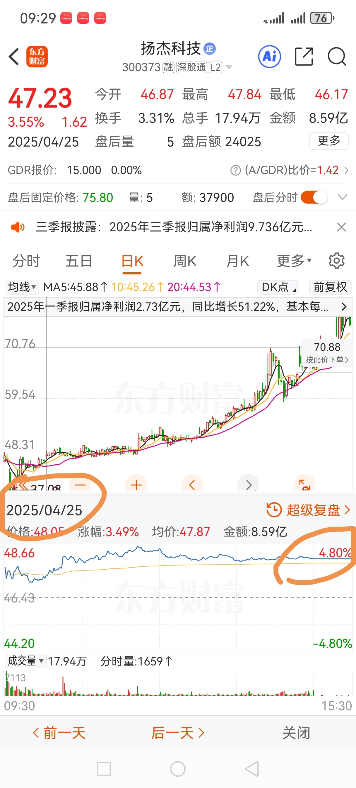 $扬杰科技(SZ300373)$ 别期望太高,这股被高度控盘,是慢牛股,K线没有暴涨的记录,